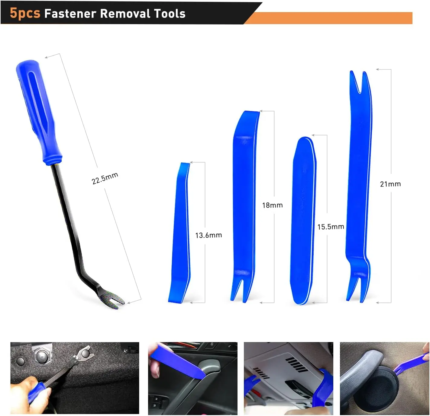 5 pcs useful car panel removal tools offers you an easy access to slide under confined clips and quickly remove those stubborn clips.