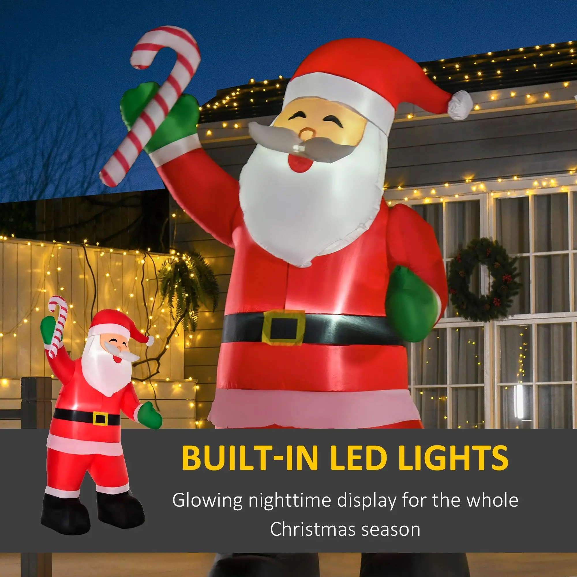 Create the ultimate festive Christmas display in your yard this holiday season with HOMCOM's eight-foot-tall inflatable featuring a smiling Santa Claus holding a candy cane. Designed with an internal white LED glow, this holiday decor will create a festive focal point in your yard. Self-inflating in minutes, this display plugs into any standard outlet allowing for a super simple set-up process that anyone can do.