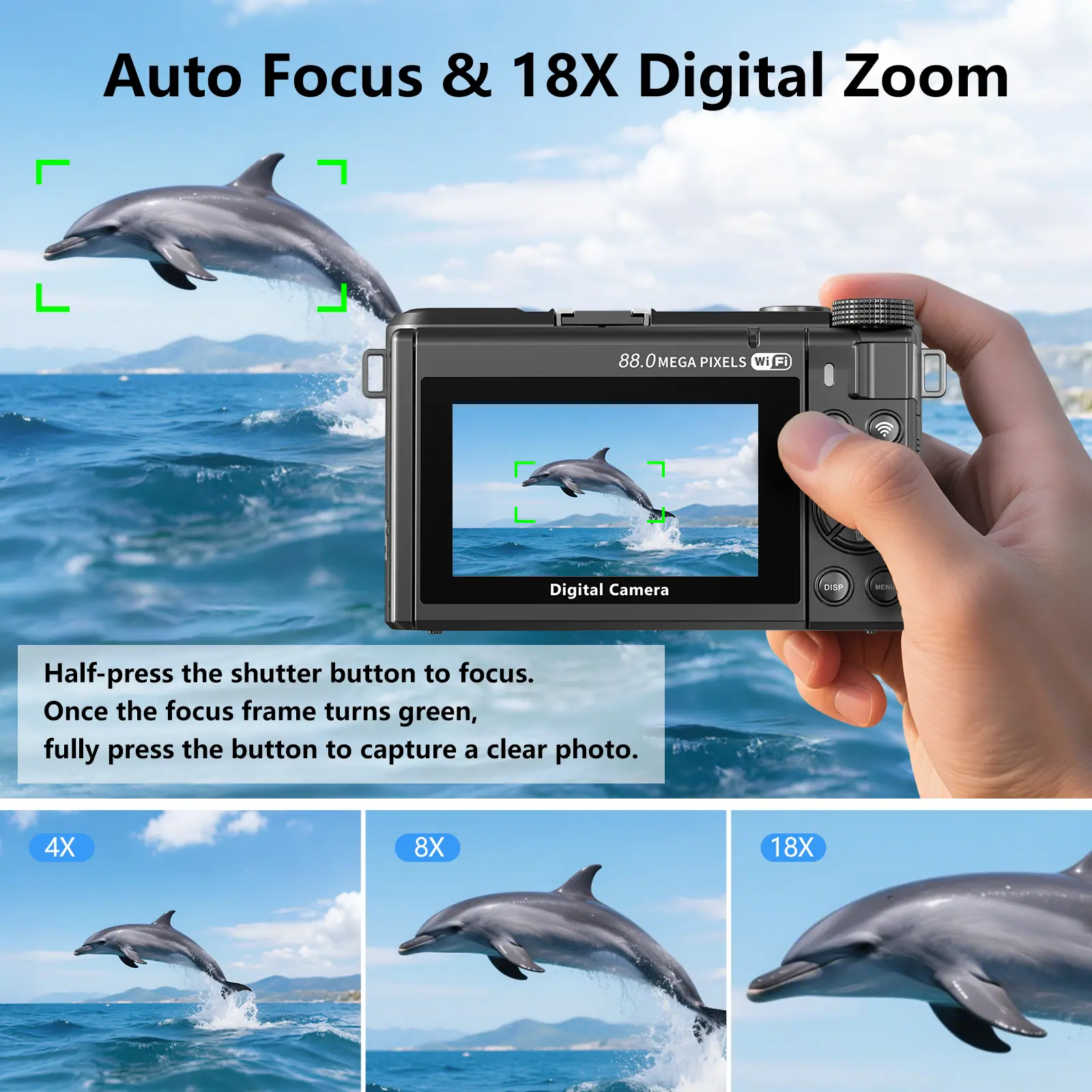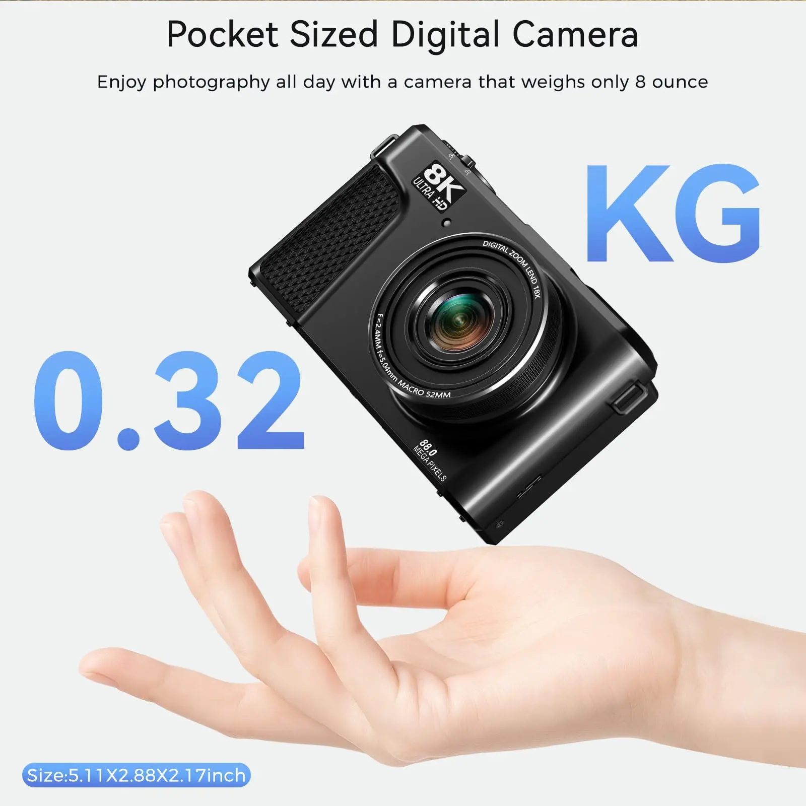 The 8K Digital Camera for Photography & Vlogging is a versatile camera with high resolution, a flip screen, and advanced features like 18X digital zoom and WiFi connectivity. It is perfect for beginners and makes a great gift for various occasions.