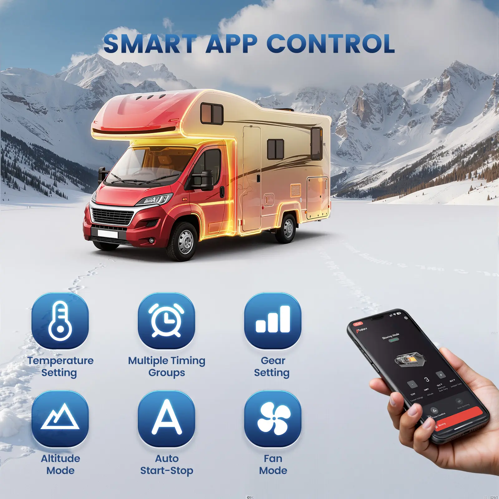 ·Bluetooth App: Turn it on/off and adjust heat from your phone.