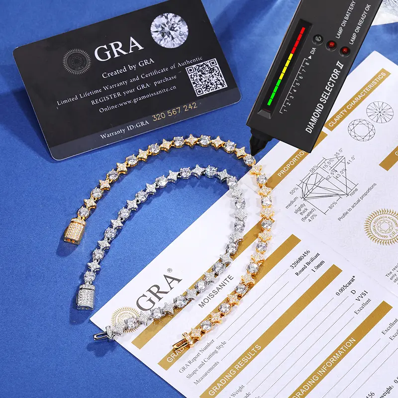 S925 Sterling Silver moissanite, silver, 6.5inch