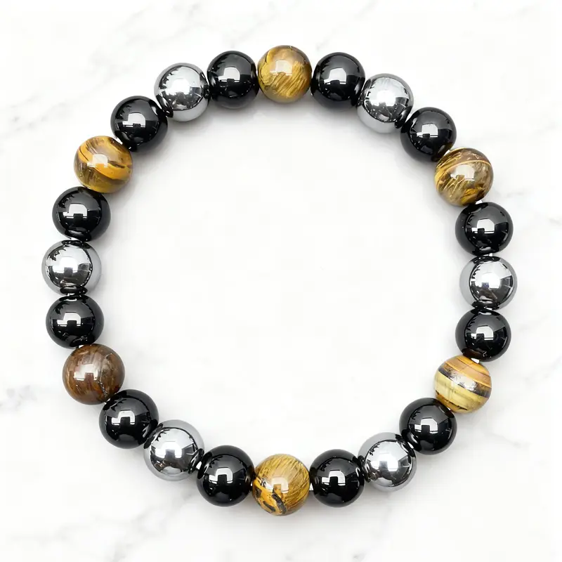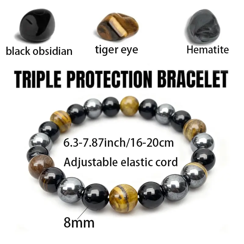 【Crystal Composition】: Features a powerful combination of black stone, hematite, tiger eye, and black obsidian for enhanced energy balance.