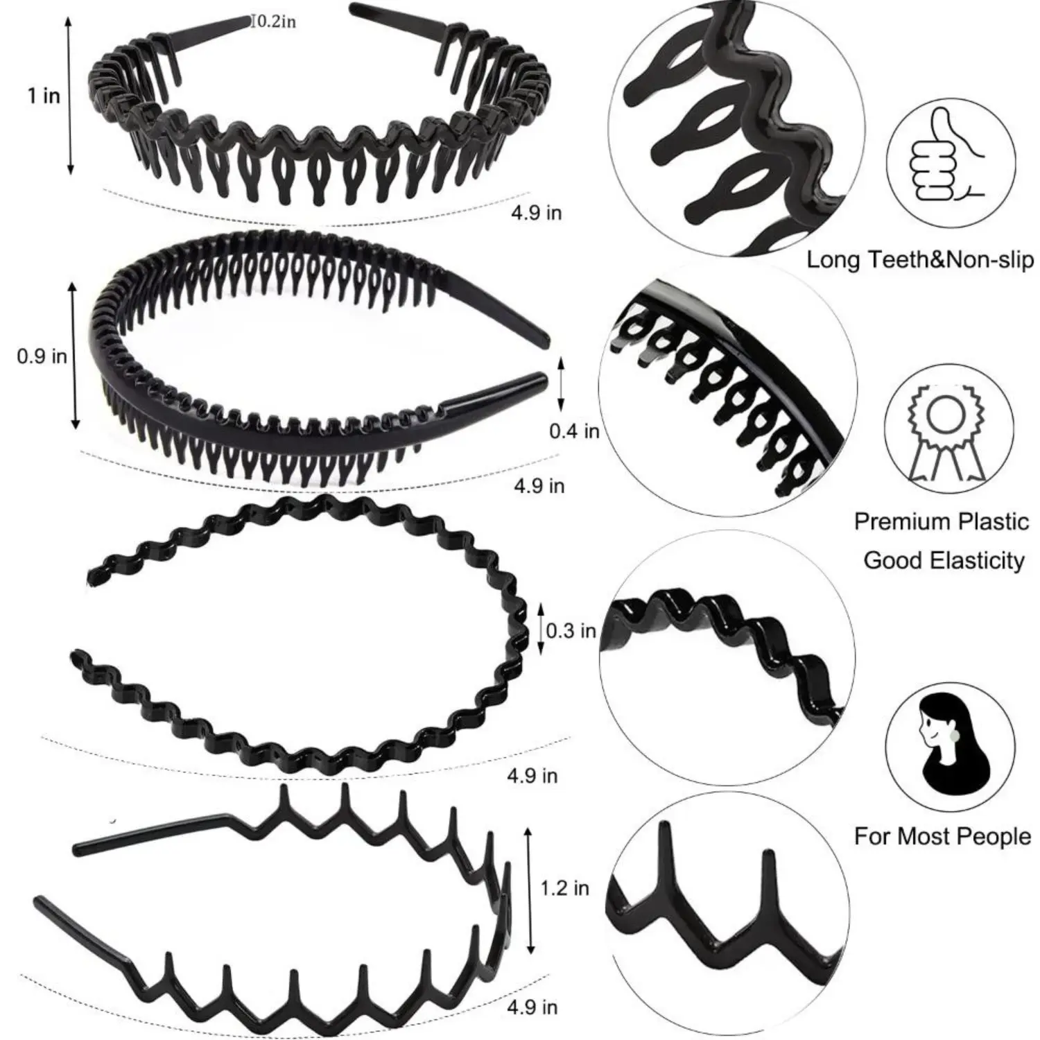 ·Package Included: There are 8 pieces of skinny plastic headbands available in 4 types with teeth and all are black, suitable for both female and male.