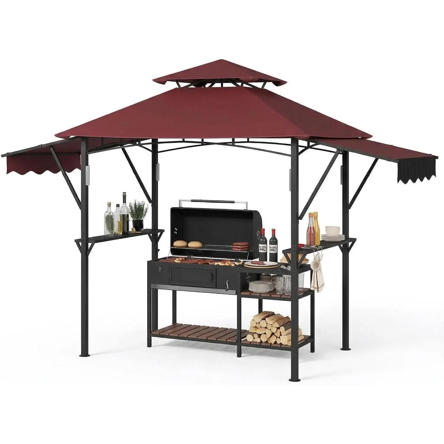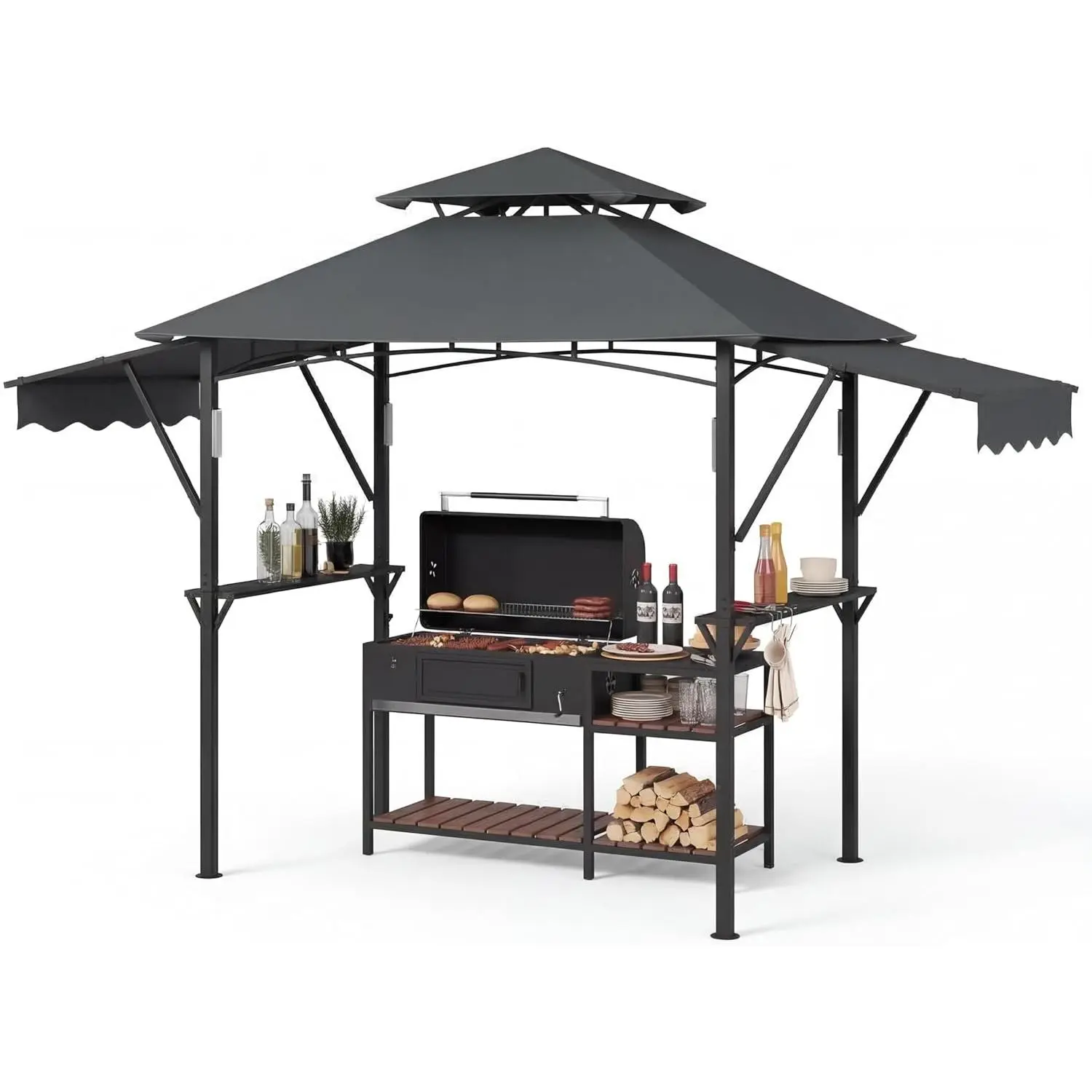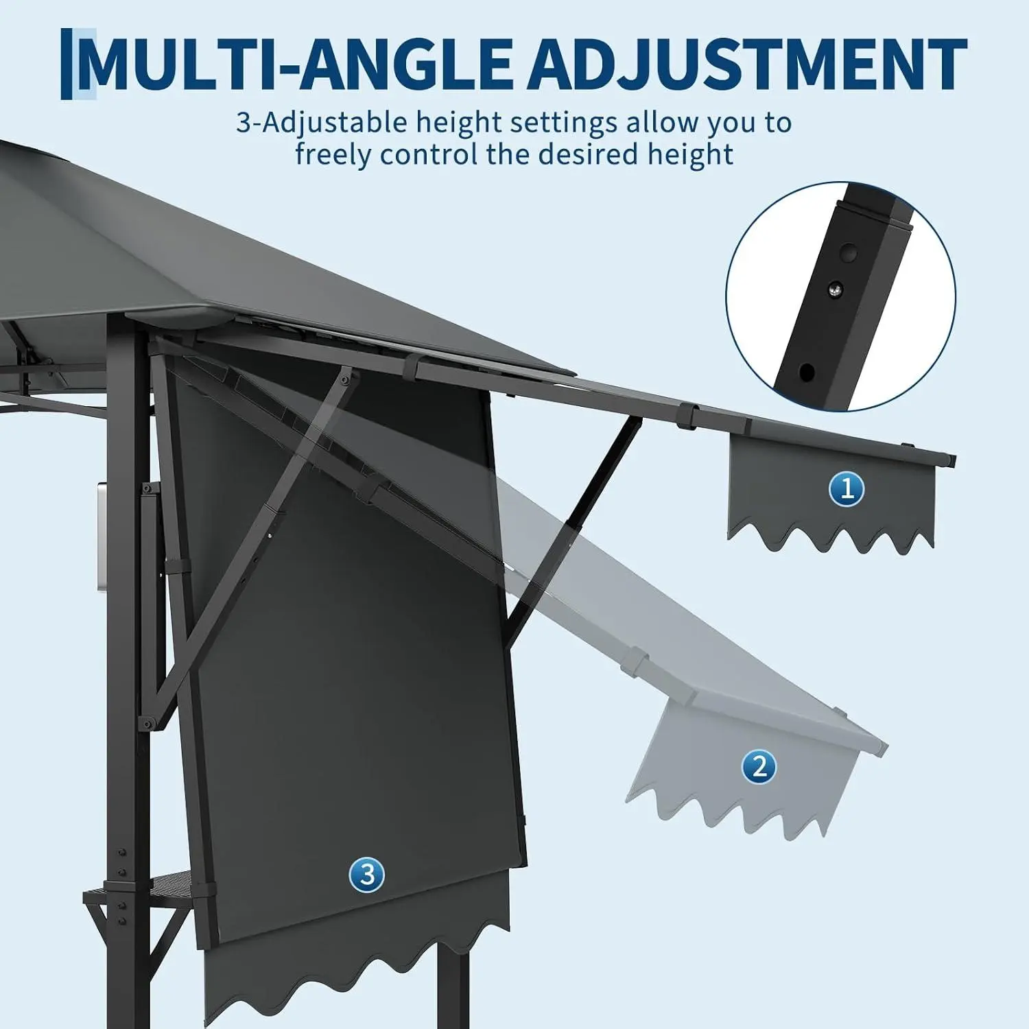 Custom Shade with Adjustable Dual Awnings: Enjoy grilling in comfort with dual side awnings that open and close at three different angles, letting you block sun, wind, or drizzle for the perfect outdoor BBQ experience in any weather