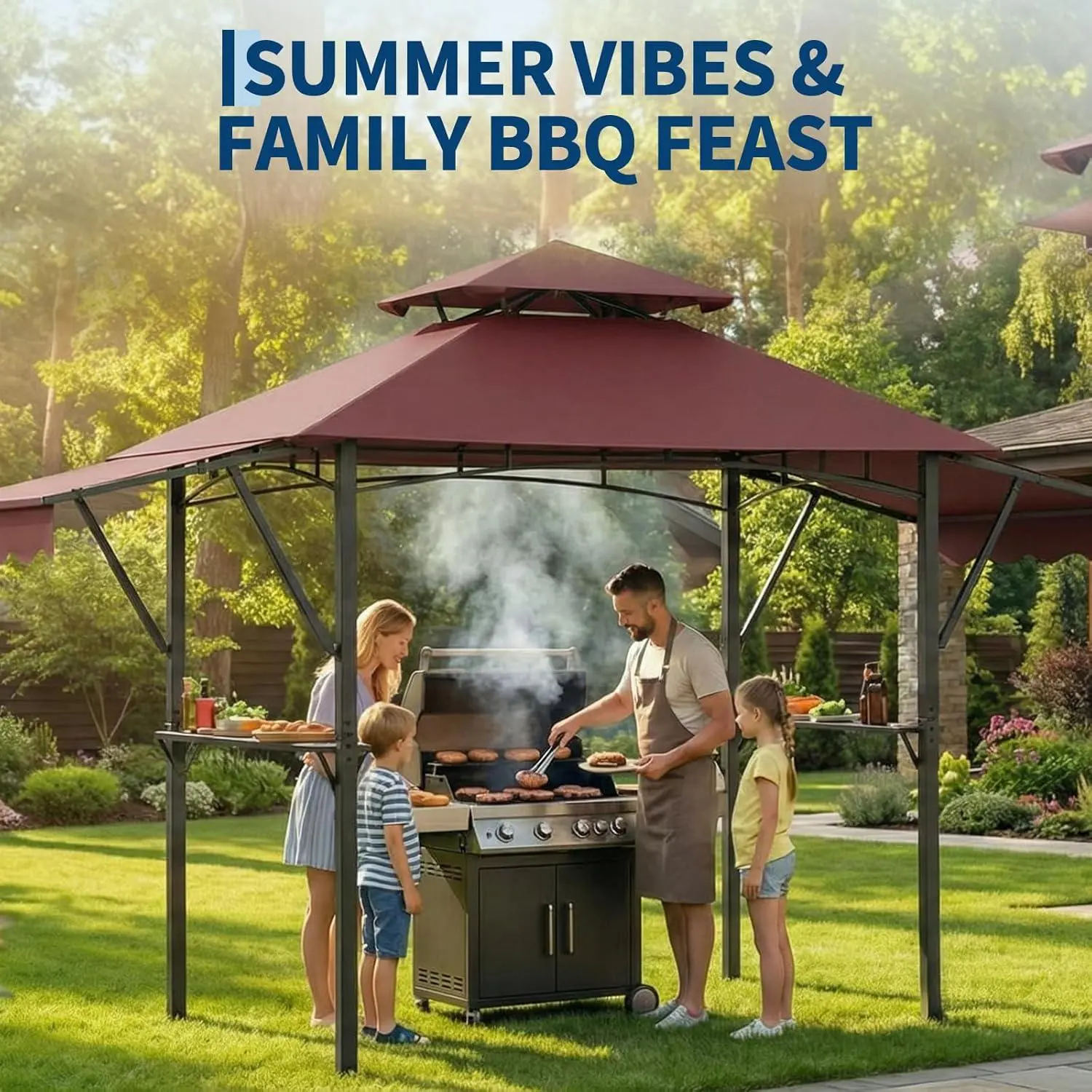 Safe, Sturdy & Weather-Resistant Build: Crafted with fire-resistant, sun-protective polyester and a heavy-duty powder-coated steel frame, this grill shelter stands strong against wind, rust, and corrosion—delivering years of reliable backyard fun