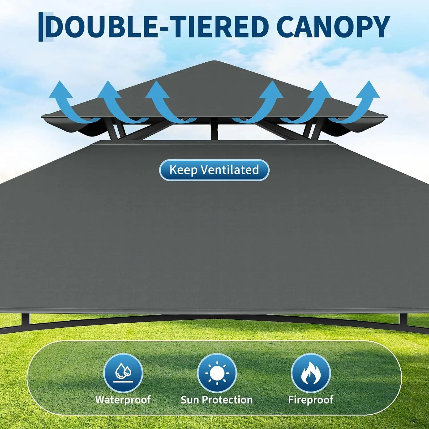 Superior Ventilation with 2-Tier Canopy: The innovative two-tier BBQ gazebo design lets smoke escape and encourages airflow, so you can grill without getting smoke in your eyes while still protecting you and your guests from harsh sunlight