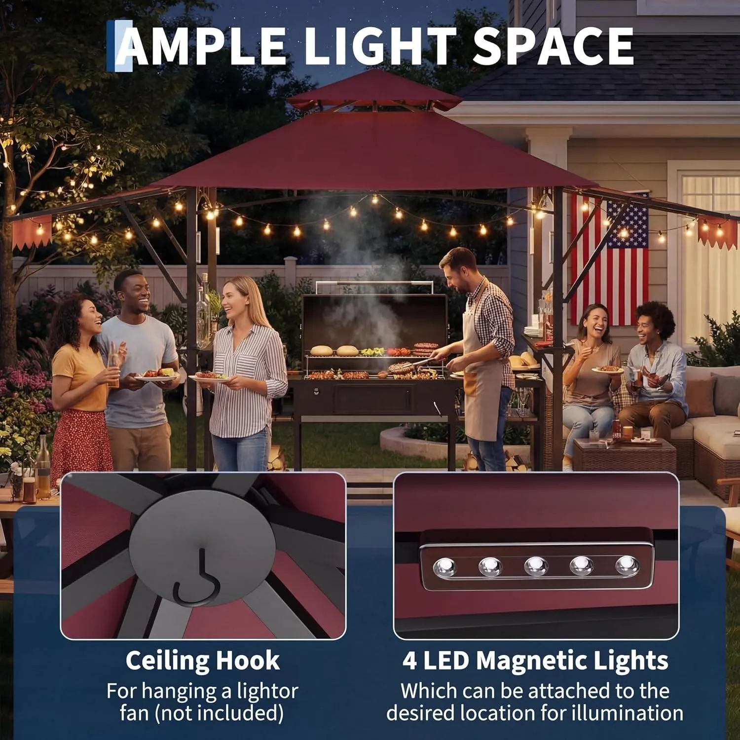 Light Up Your BBQ Nights with Ceiling Hook & LEDs: The integrated ceiling hook is perfect for hanging extra lighting or a fan (not included), and four attachable LED magnetic lights let you grill late into the evening with bright, focused illumination