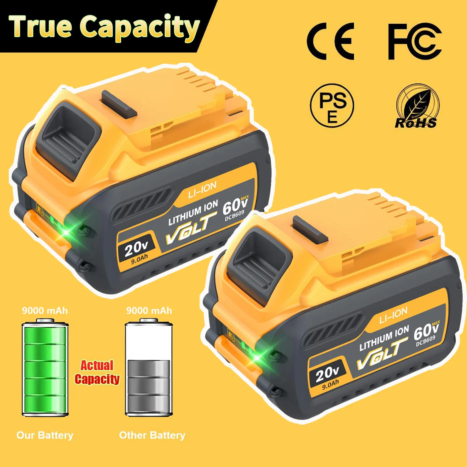 🔋【 Safe & Reliable】Advanced battery for DeWalts, made of premium material and smart chip, obtain the CE FCC PSE ROHS certified, tested by manufacturer to match OEM products safe to use. Battery can be fully or partially recharged at any time, keep no capacity loss and memory effect.