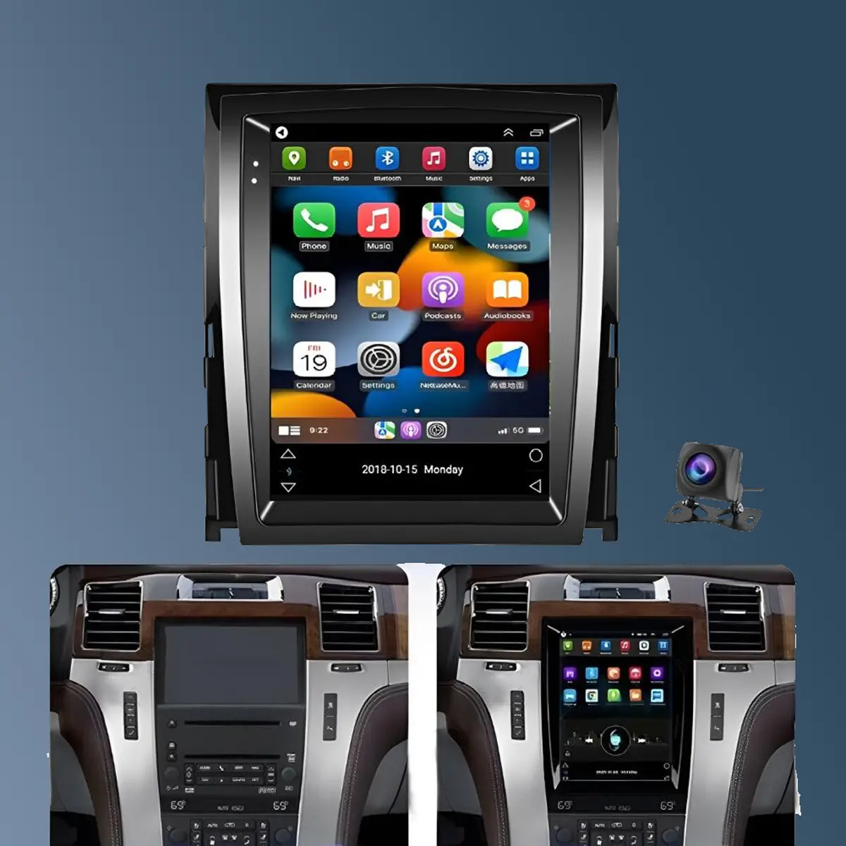 9.7" HD 2.5D tempered glass touchscreen with 1080P resolution. Smooth operation and user-friendly interface, designed specifically for automotive use.