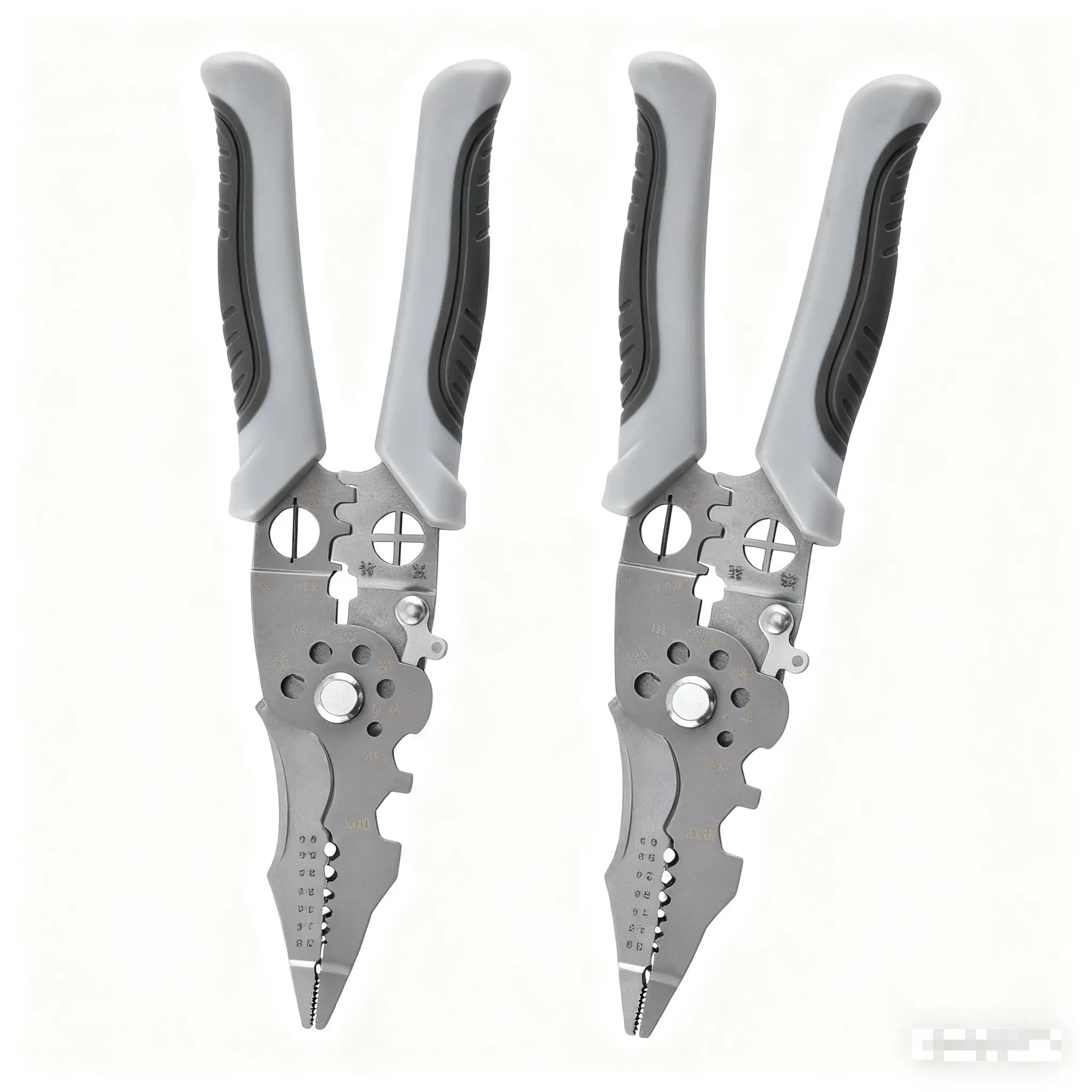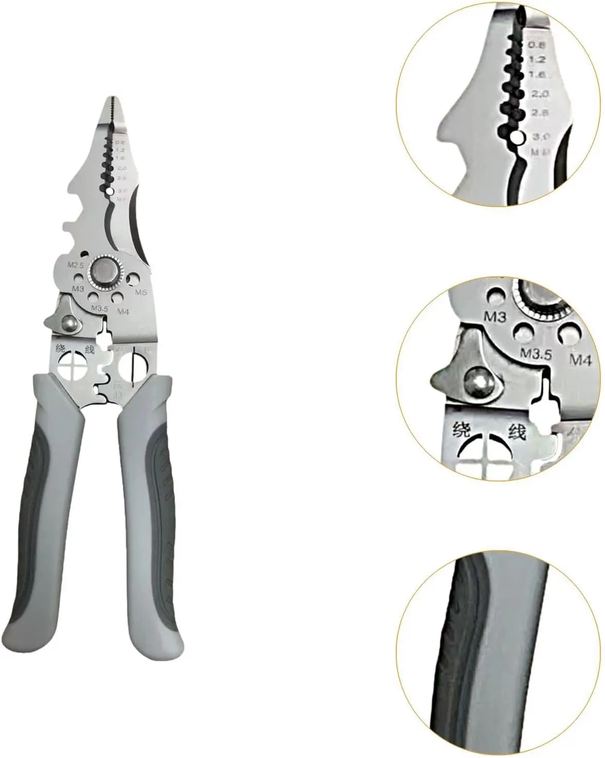 Practical Multi-function Tool meets a variety of electrician operation requirements such as cutting the wire, stripping, crimping, winding, splitting, clamping, and wrenching Precise wire stripping hole design.