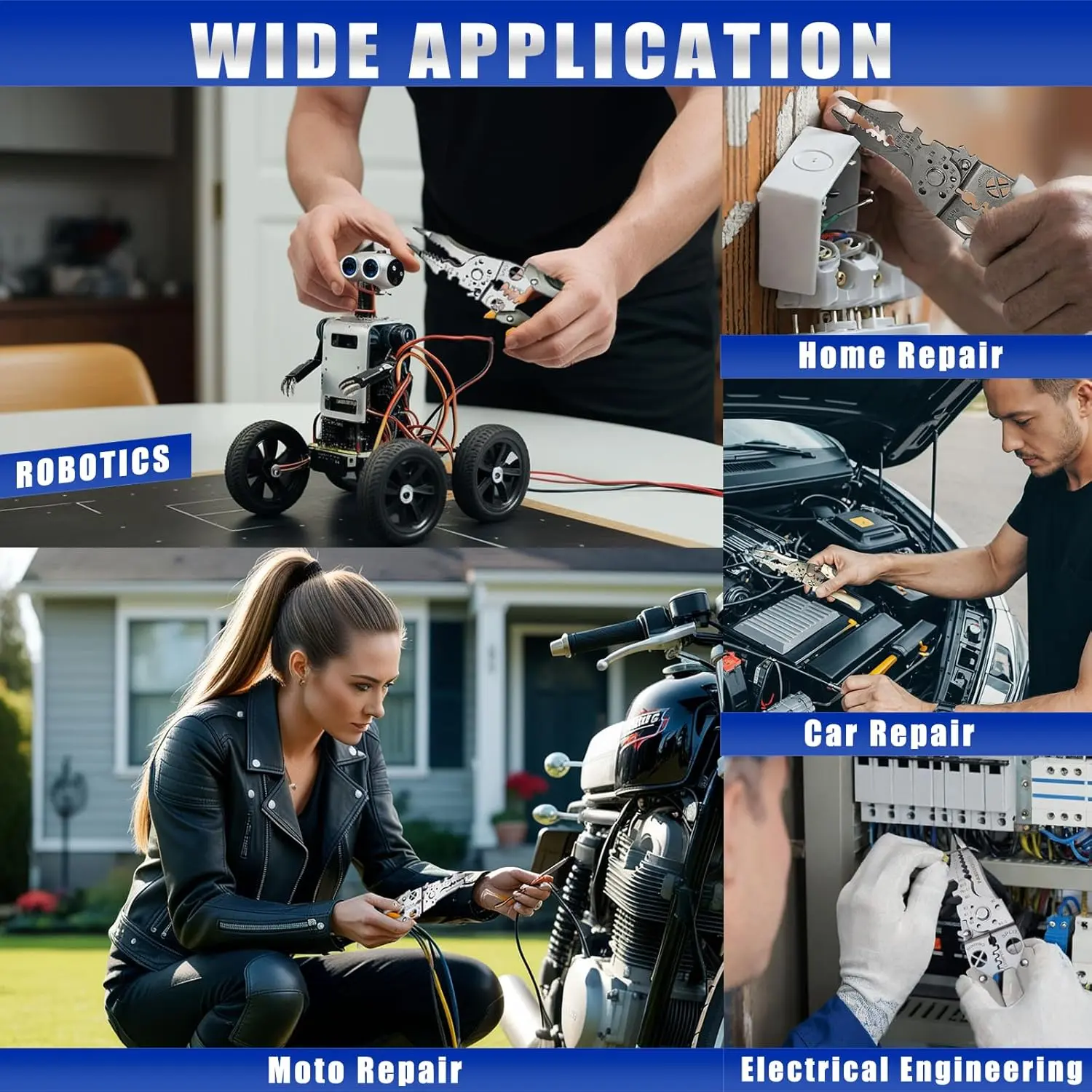 This versatile tool is perfect for DIY electrical repairs and home projects. It features an adjustable comfortable grip, ensuring ease of use during extended periods. The refined craftsmanship makes it suitable for both professional and home use. Ideal for cutting, stripping, and crimping wires, this multi-function tool streamlines your electrical tasks.