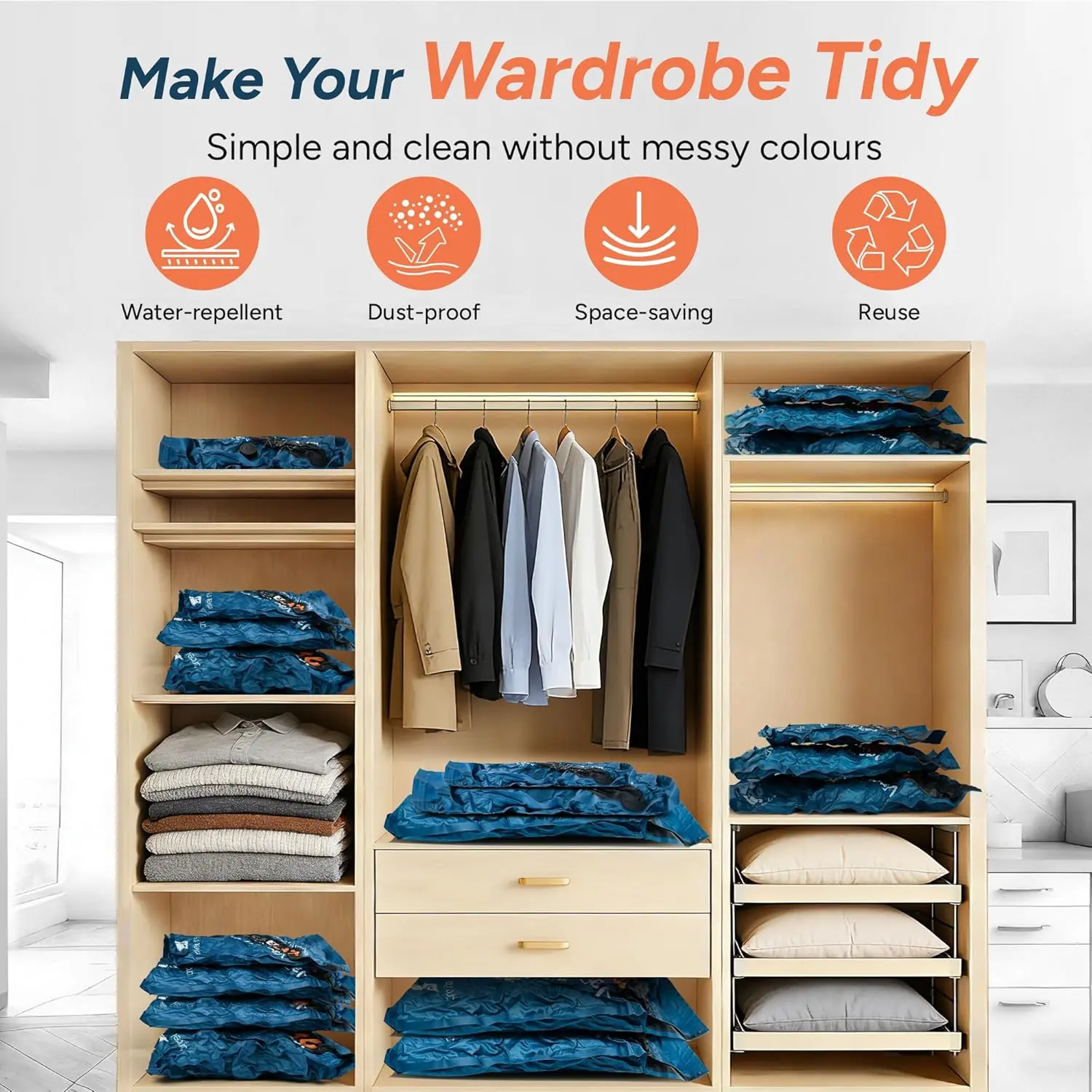 ·【3 Size Versatility for Global Travel】 Includes S (35x50cm), M (40x60cm), and L (50x70cm) sizes, perfectly matched for 20" to 28" suitcases. Whether for home seasonal storage or business trips, these bags keep your wardrobe and luggage tidy without messy colors.