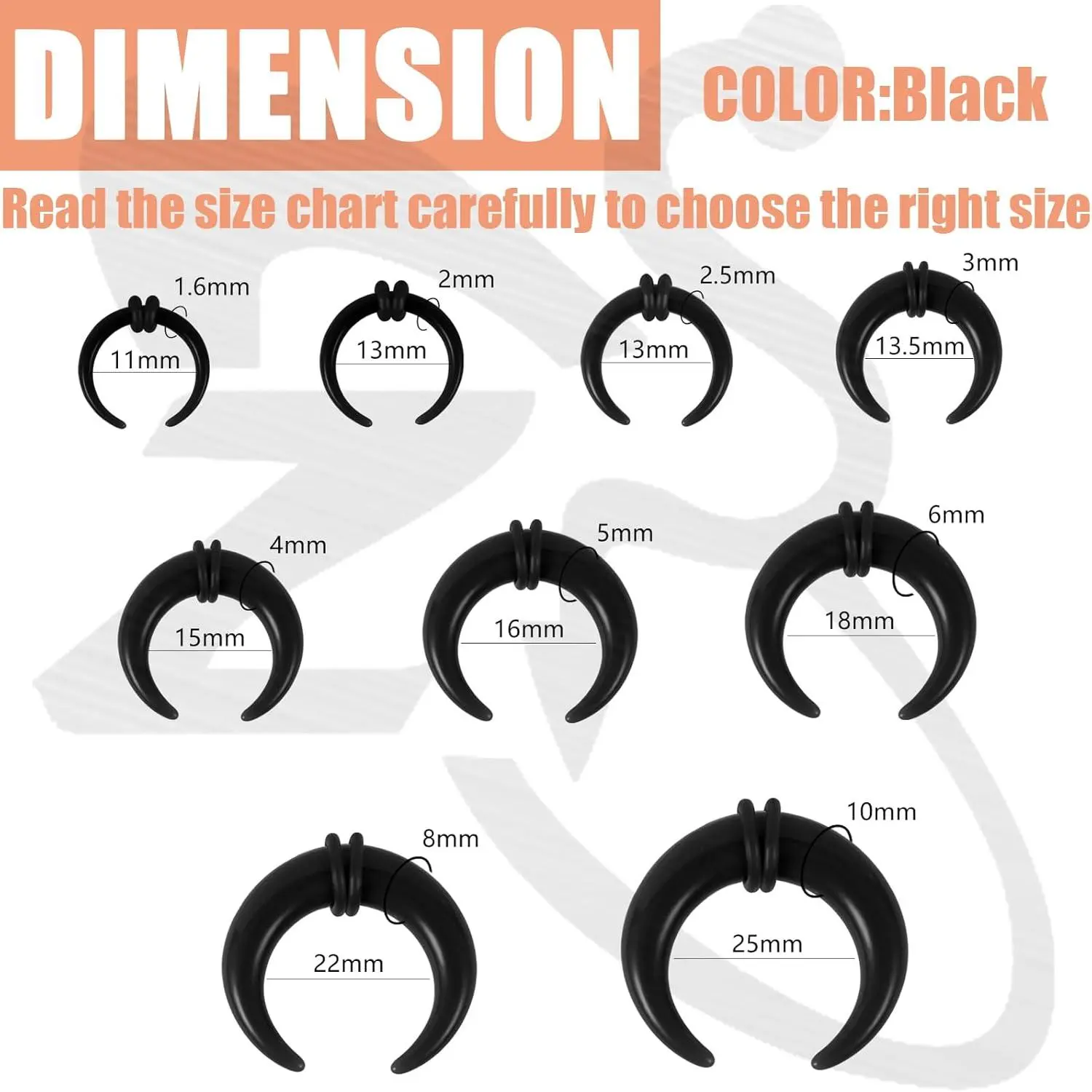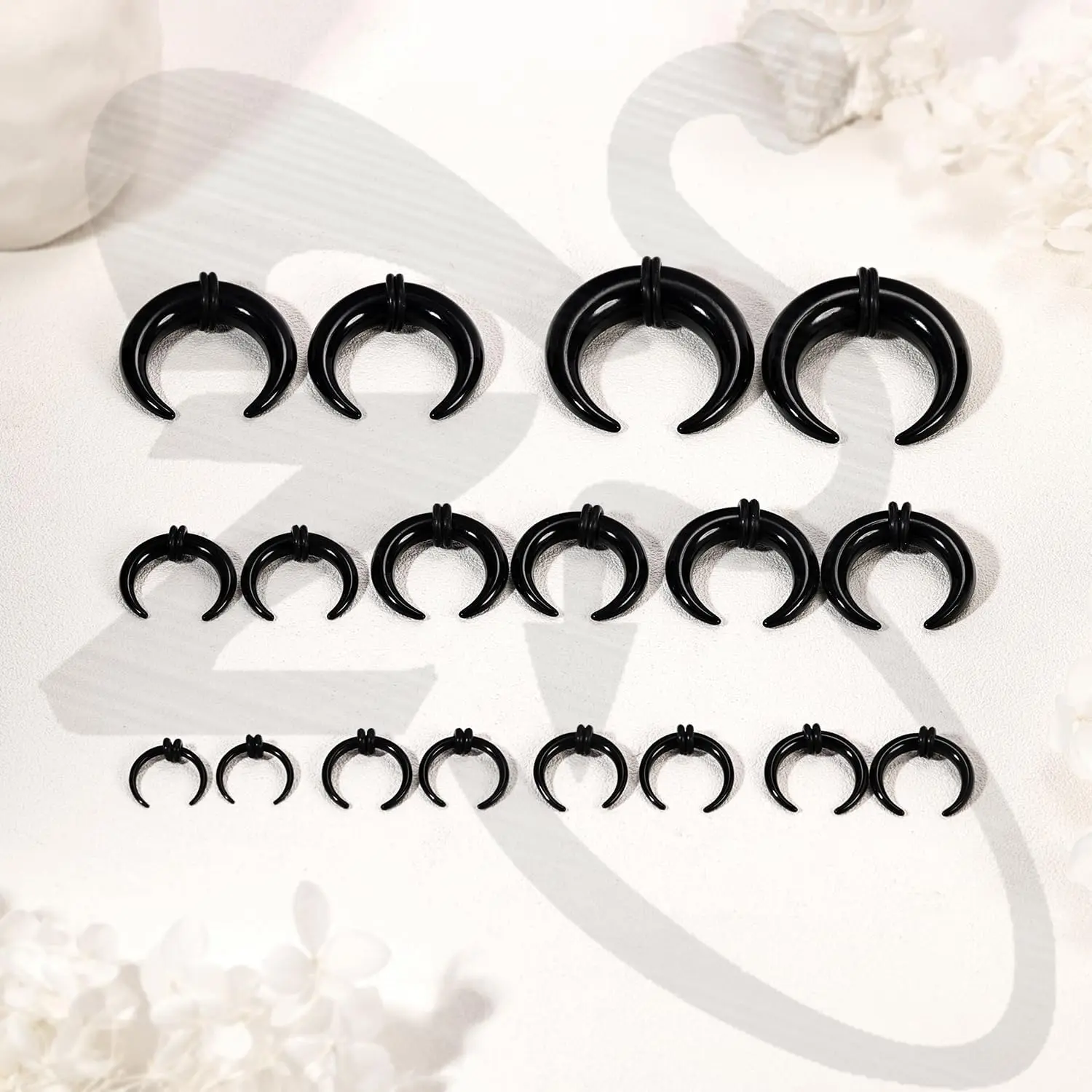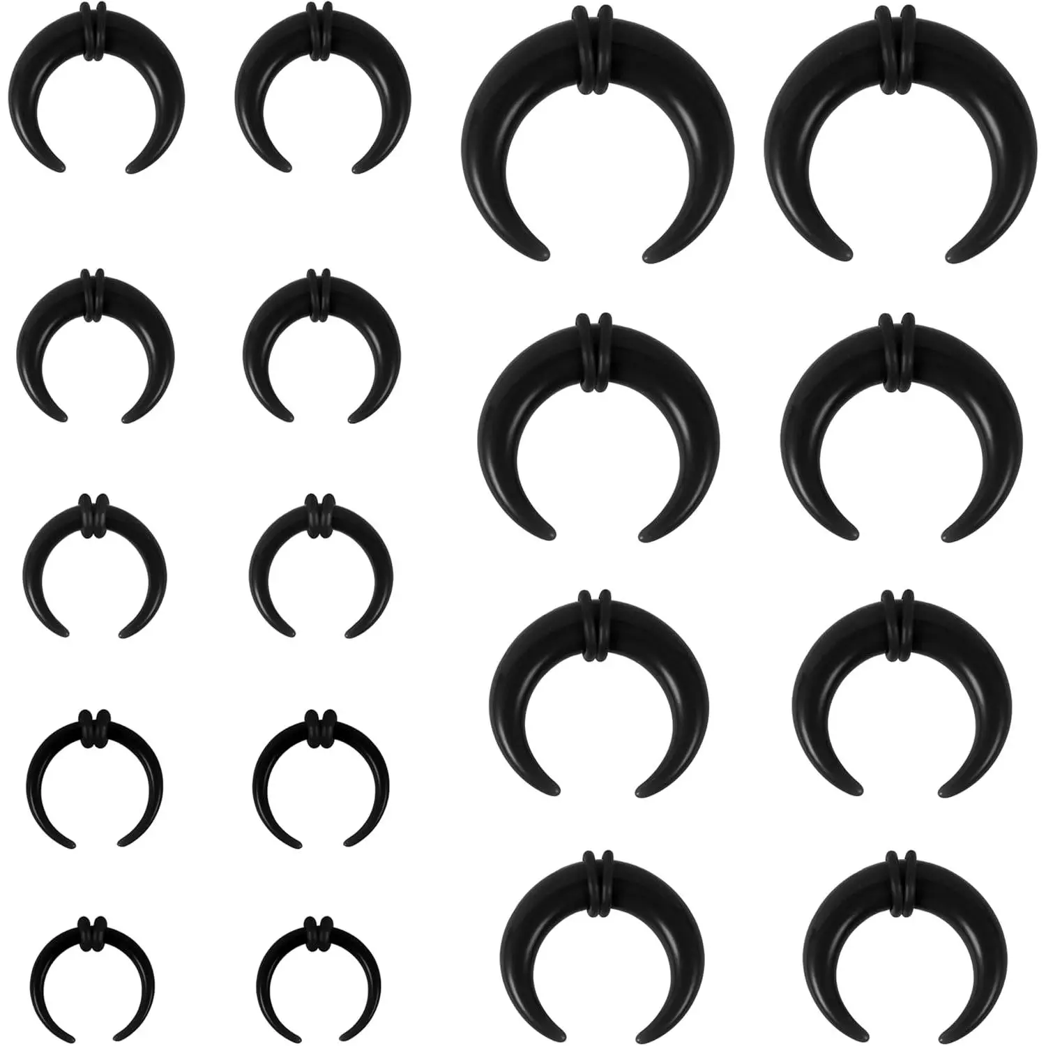 ❀Hypoallergenic Acrylic Septum Taper--Buffalo horseshoe nose rings are made of acrylic with high polish.Suitable for those who are allergic to stainless steel material.These stretching ear tapers are not only ensures your health while expanding your ear, but also you feel comfortable.Light enough that you can't feel it at all.❀Acrylic Buffalo Tapers Size--Crescent stretching expander rings gauge: 14G, 12G, 10G, 8G, 6G, 4G, 2G, 0G, 00G.C shape earrings taper inner diameter: 11/13/13.5/15/16/18/22/25mm.Stretcher taper kit color: blue, pink, white, black.Wearing cool ear stretching kit you more elegant and charming.❀Multiple Wearing Choice--Nose piercing tappers can meet your personal needs and also serve as exquisite gifts for family, friends and loved one.Ear gauge kits are suitable for piercing fans of all ages.You can use nose rings as daily septum piercing, nose stretching set for ear lobe, septum, cartilage or other stretching devices where you want to expand.❀Septum Pincher Tapers for Women--One order comes with 9 pairs 14g-00g horseshoe piercing tappers.Four colors are available, economical ear plug tunnel tapers, reasonable price that deserve to purchase.❀SATISFACTORY AFTER-SALES--For any questions about jewelry, feel free to contact us, we are committed to solving the problems ASAP. Your happiness is our priority. PLEASE LOOK FOR THE BODY JEWELRY STORE FOR PURCHASE. All BODY JEWELRY ITEMS WILL BE UPDATED REGULARLY.