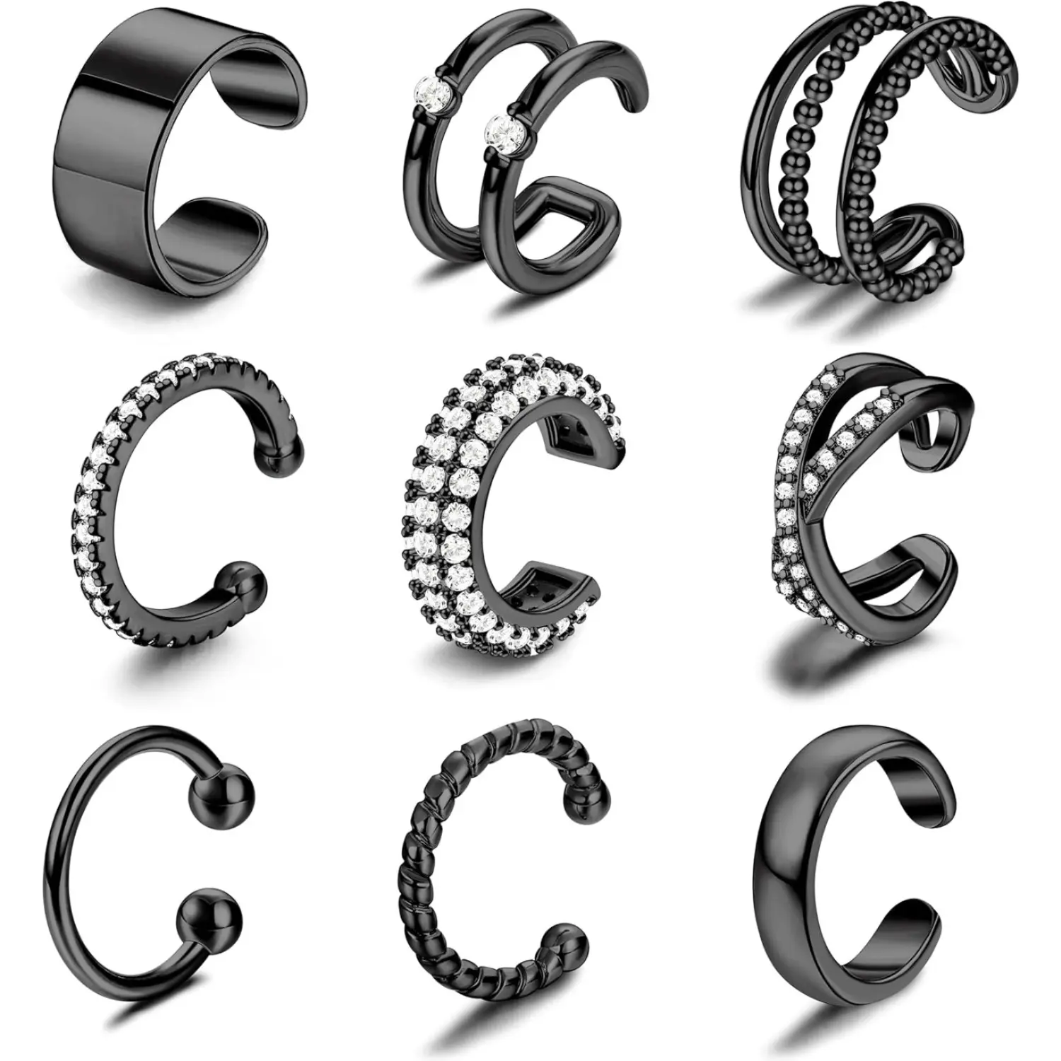 ·These fake piercings are perfect for everyone – no piercing required! The set includes 9 stylish designs in 14K Gold Plated, Silver Plated, Rose Gold Plated, and Black. Mix and match to suit any occasion and elevate your ear jewelry collection.