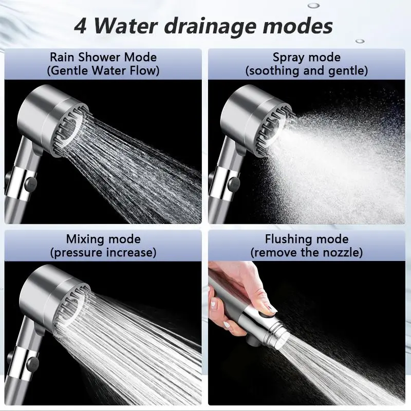 ·Adjustable Water Flow Modes: The Shower Head with Handheld and Filter offers four practical water outlet modes: Rain, Blend, Spray, and Clean.Easily switch between modes to customize your shower according to your needs.