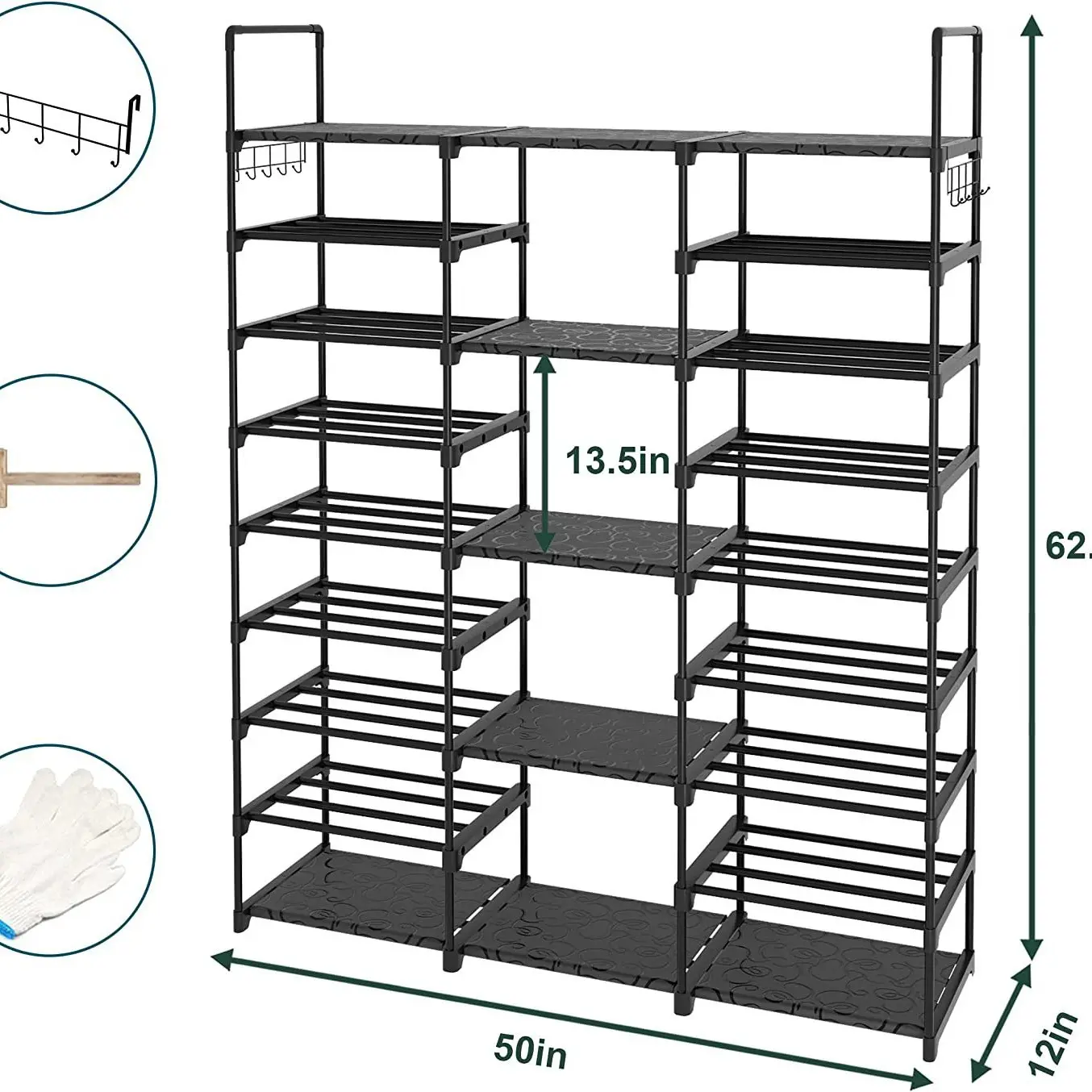 ·Size: Standard 9-tier large capacity design (fits 50-55 pairs shoes)