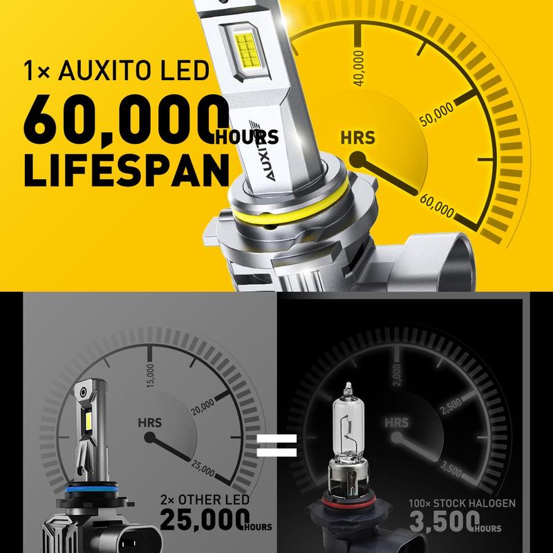·【6 Times Brighter Illumination】AUXITO LED Headlight, equipped with advanced CSP chips, achieve an astonishing 600% (6 times) increase in brightness over traditional halogen bulbs. This significant boost in luminosity not only expands your field of vision but also enhances driving safety during night-time excursions and alleviates eye fatigue