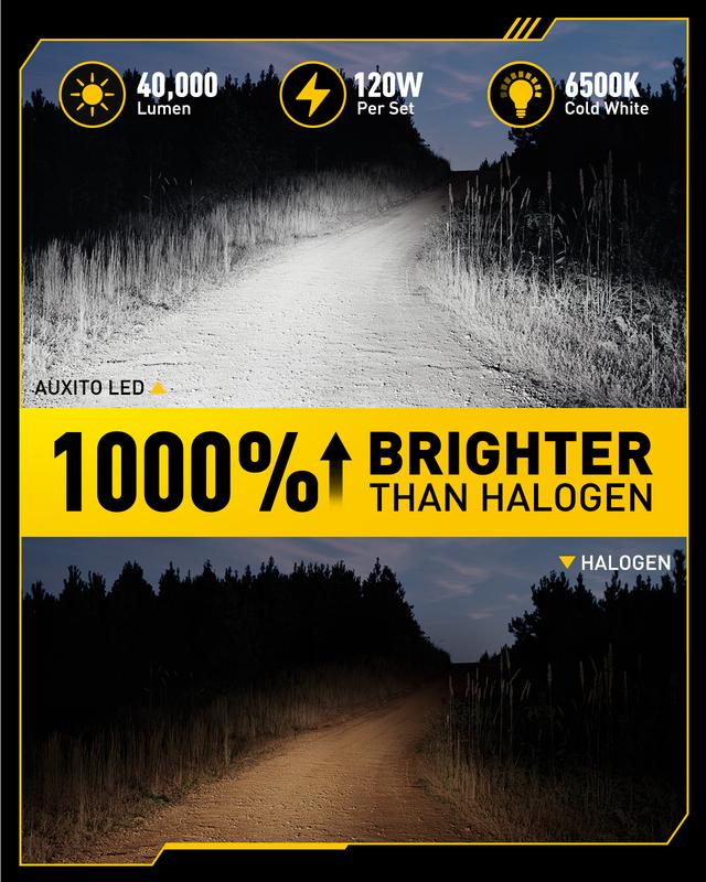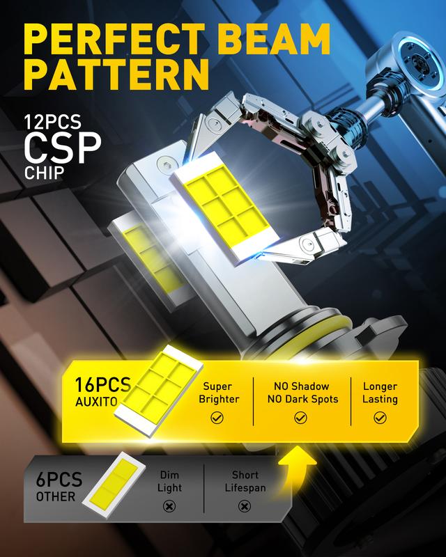 ·[Superior Illumination]:Upgrade your lighting with AUXITO 9005 bulbs, featuring 24 high-intensity CSP chips that deliver a combined 40,000 lumens per pair—10 times brighter than standard bulbs. With a crisp 6500K cool white color temperature, these bulbs enhance nighttime visibility and provide clear sightlines in challenging weather conditions.