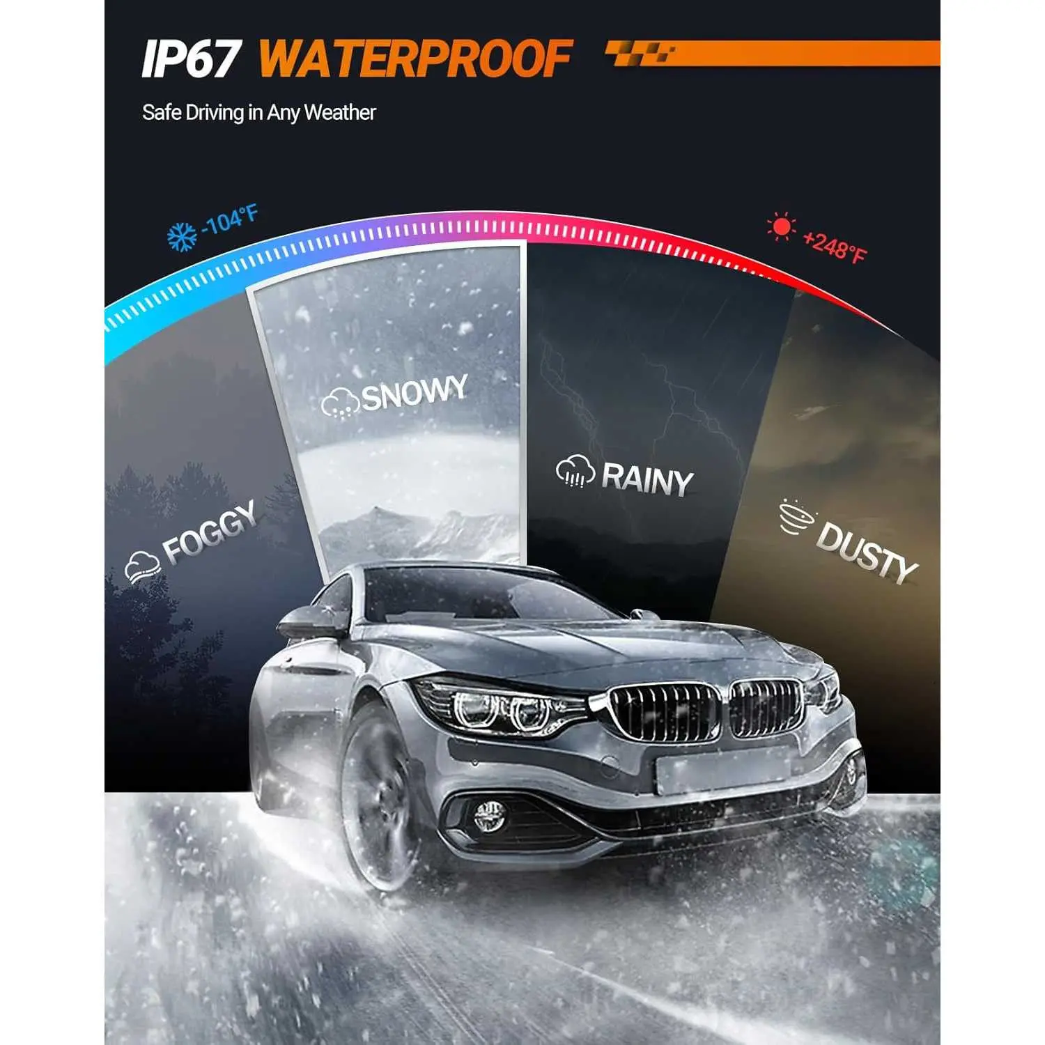 ·(50000+ Hours Lifespan): Equipped with a 13000RPM high-speed cooling fan, the 9005 bulbs offer exceptional heat dissipation, providing over 50,000 hours of reliable illumination and smooth operation.In addition, IP67 waterproof technology can make it use in a variety of weather.