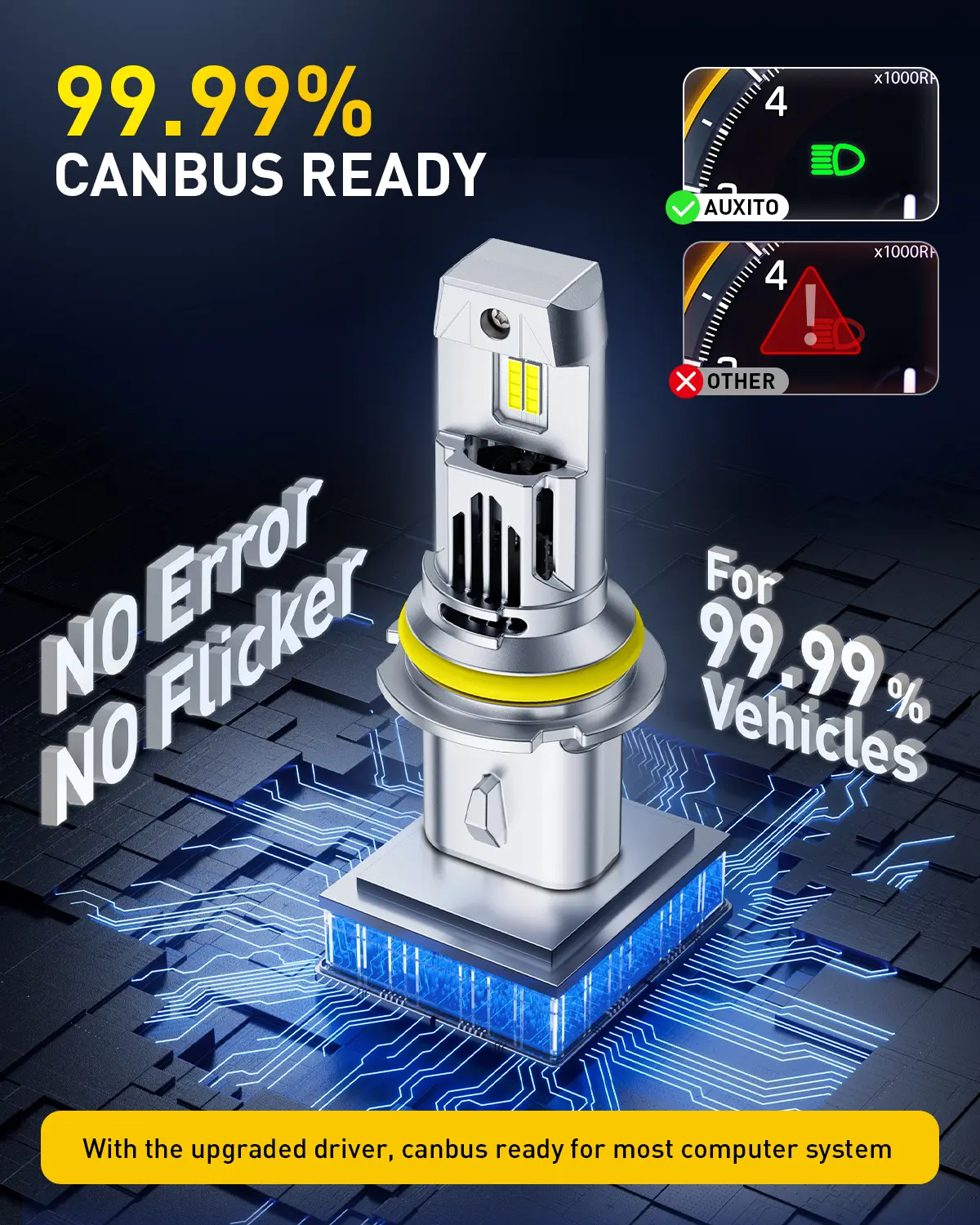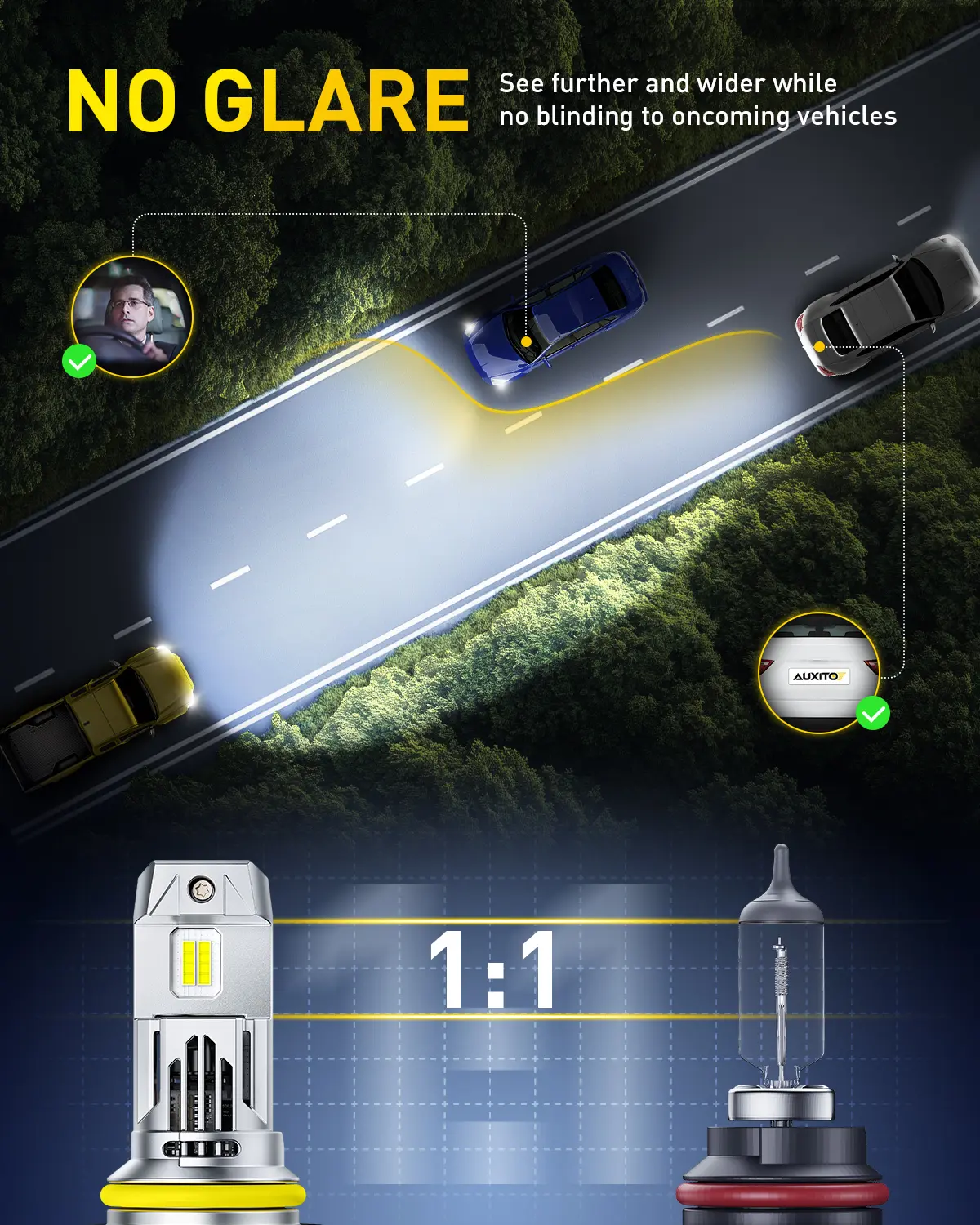 ·AUXITO HB5 bulbs offer the best light pattern and clarity for optimal visibility, with no dark spots, shadow areas, blinding or glare for oncoming drivers