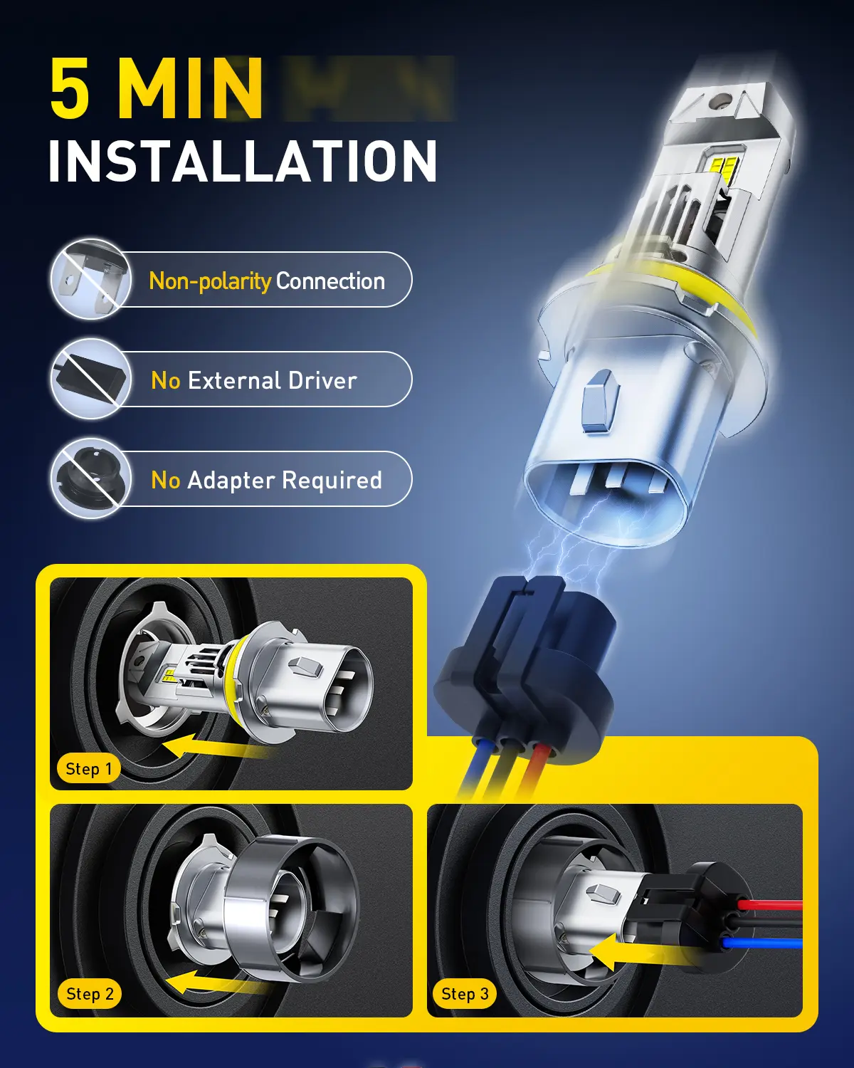 ·They are designed for simple plug-and-play installation, with no additional tools or wiring required. Just install and enjoy brighter, more efficient lighting within minutes.