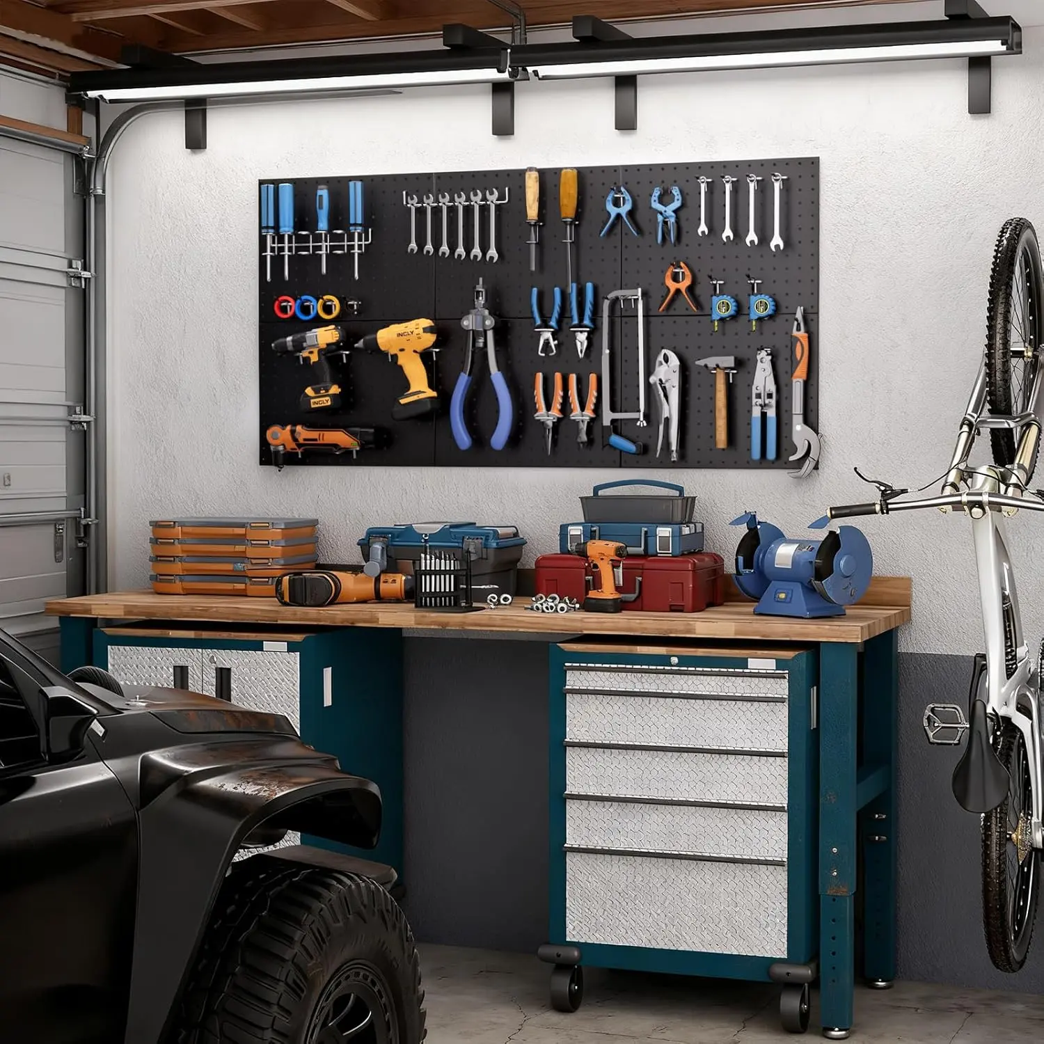 INCLY 90PCS Pegboard Wall Organizer with 6 Pack Metal Pegboard Panels and 1/4 Inch Pegboard Hooks