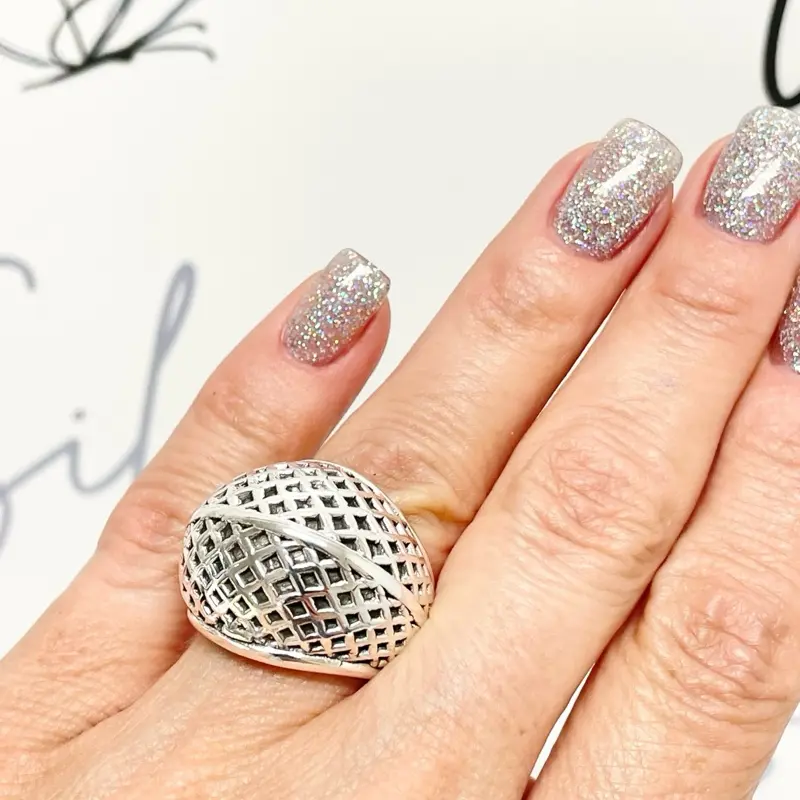 5. Sterling Silver 925 Square Design Ring Lightweight Hollow Electroformed