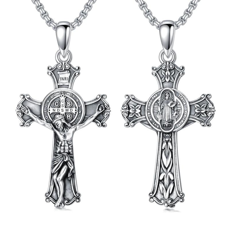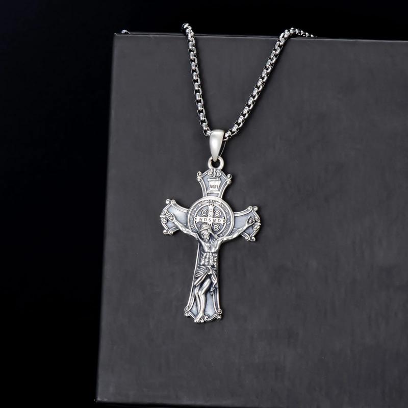 925 Sterling Silver St Benedict Crucifix Pendant Necklace Religious Amulet Jewelry Gift for Men Women TikTokShopBlackFriday