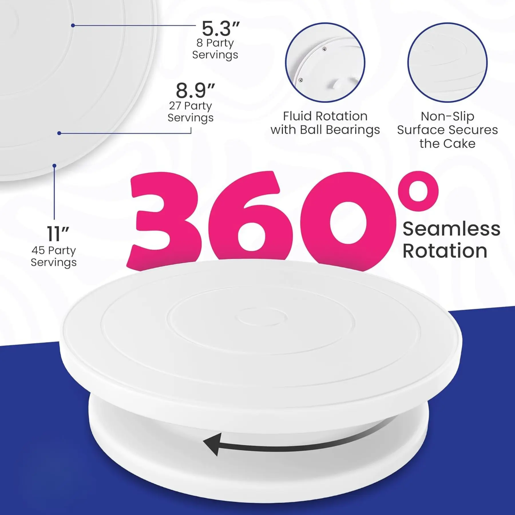 Our cake turntable for decorating is designed with high-quality materials for stability and smooth rotation.Includes essential cake frosting tools and icing spatula, making it a must-have for professional cake decorating.