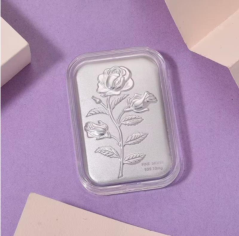 Embrace purity and sophistication with this 999 fine silver emboss bar. Expertly crafted from the purest silver, its detailed embossing reflects elegance and timeless artistry. A perfect piece for display or gifting, it symbolizes refinement, value, and enduring beauty.Details | Timeless elegance with 999 fine silver | Lifelike detail from intricate embossing | Sleek rectangular form for display appeal | Refined precision with 31×45.5 mm size | Ideal luxury gift or collector’s choice