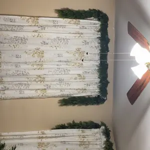 I purchased 2 sets of 2pcs.The product is not as "full" as depicted and marketed. One set worked alright. I was able to arrange it the way I intended. The other, fell apart as soon as or even before I took it out of the packaging. In trying to more carefully unravel the garland, more pieces fell, making a mess, so I gave up. Quality control sucks. The process of trying to get a refund sucks.