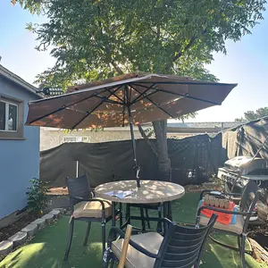 These umbrellas are the amazing! Solid construction, beautifully tiered, elegant, and solar lit. I have owned solar umbrellas over the years but these are a cut above the rest. Highly recommend these umbrellas to anyone who wants not only to enjoy the shade in the hot sun or solar lights at night!