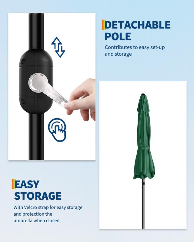 ·Effortless Adjustability: Easily tilt the canopy with a push-button mechanism and smoothly open or close the umbrella using the ergonomic crank handle—quick shade on demand, all day long.