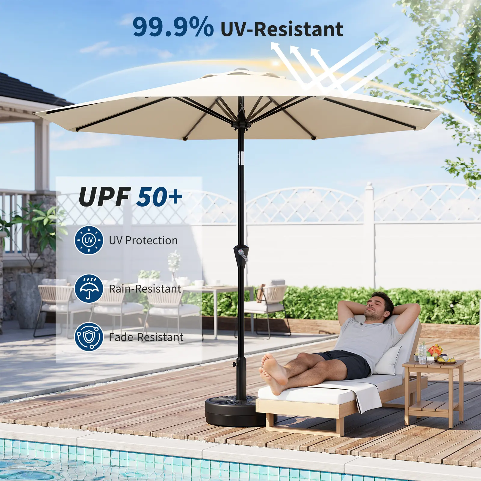 【Premium UV-Resistant & Water-Resistant Fabric】Crafted from high-quality polyester fabric, this 9 ft patio umbrella offers excellent UV protection and water resistance. Easy to wipe clean after rain, it maintains vibrant color and a fresh look for long-lasting outdoor use.