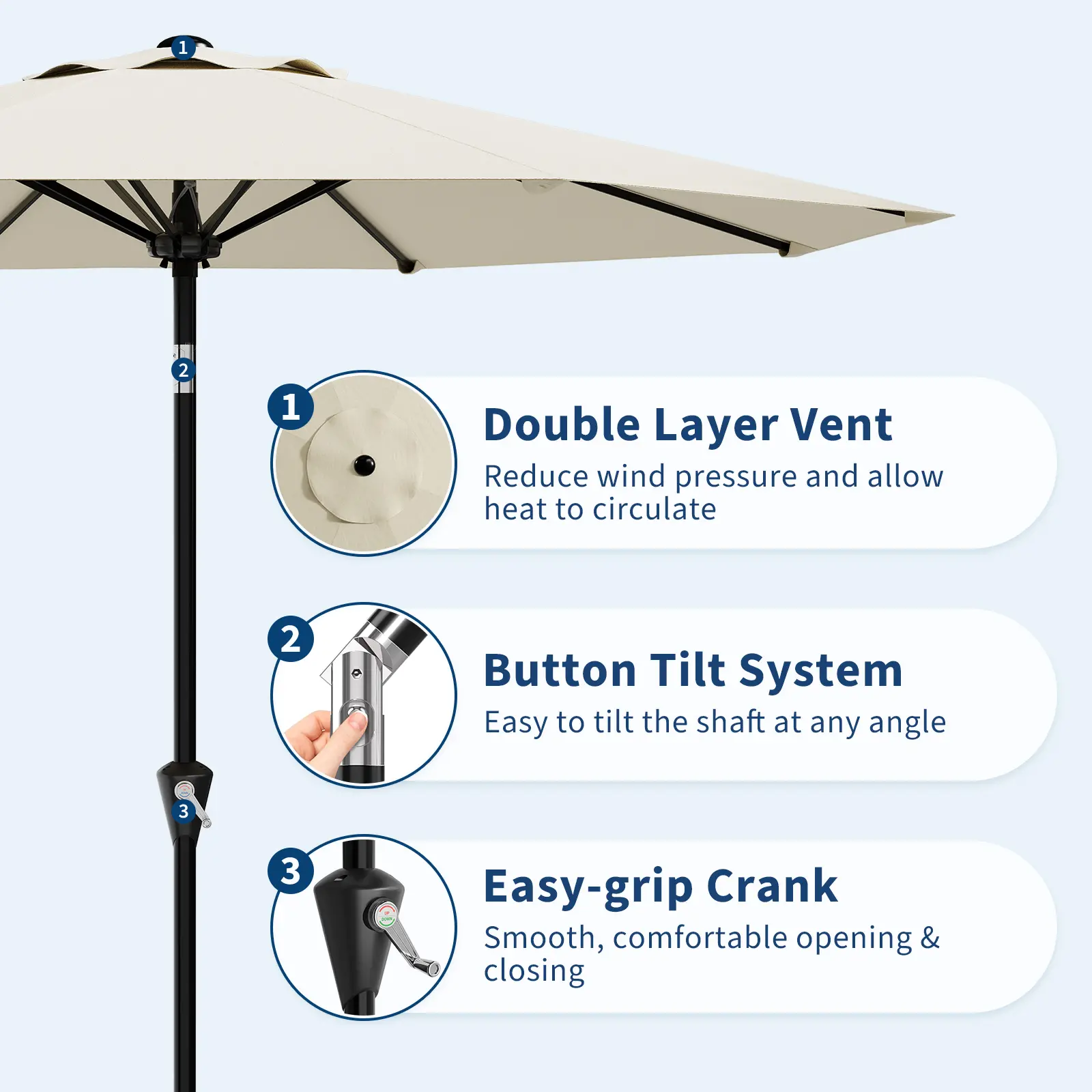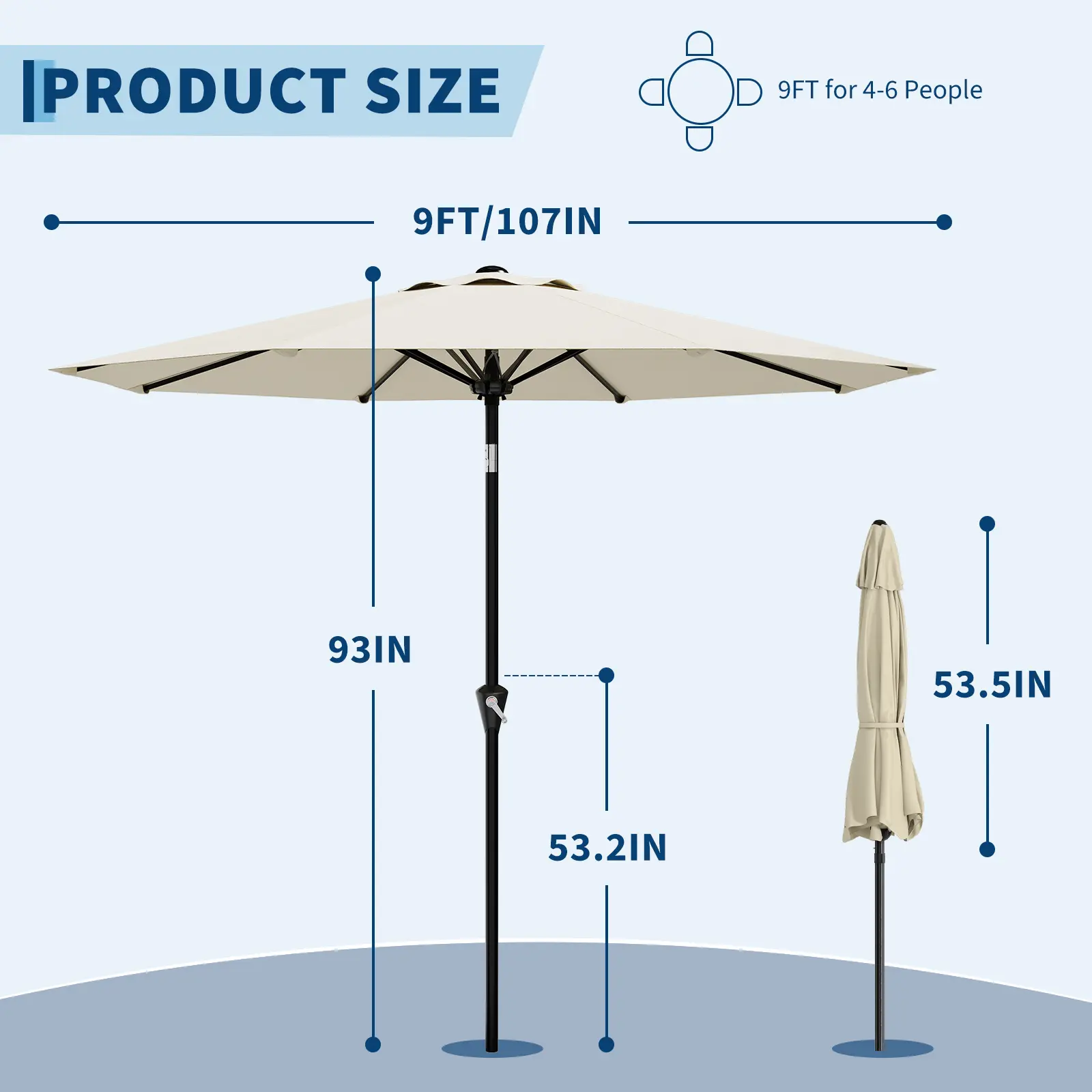 【Versatile Shade for Any Outdoor Space】Our 9 ft table umbrella provides ample shade, making it ideal for patio tables, gardens, decks, backyards, poolside areas, and outdoor cafes. The modern design complements any outdoor décor, ensuring a stylish and functional addition to your space.
