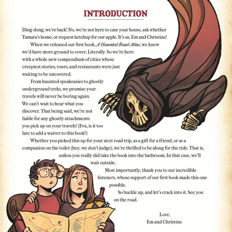 From the truest crimes to the spookiest supernaturals, this guide will have even more illustrated stories, beverage pit stops, and ice cream recommendations. A Haunted Road Atlas: Next Stop will explore all the places Christine and Em didn’t get to include in the first book, focusing on 30 new cities they’ve fallen in love with on their travels … and the scariest places that left them shaking in their boots.
