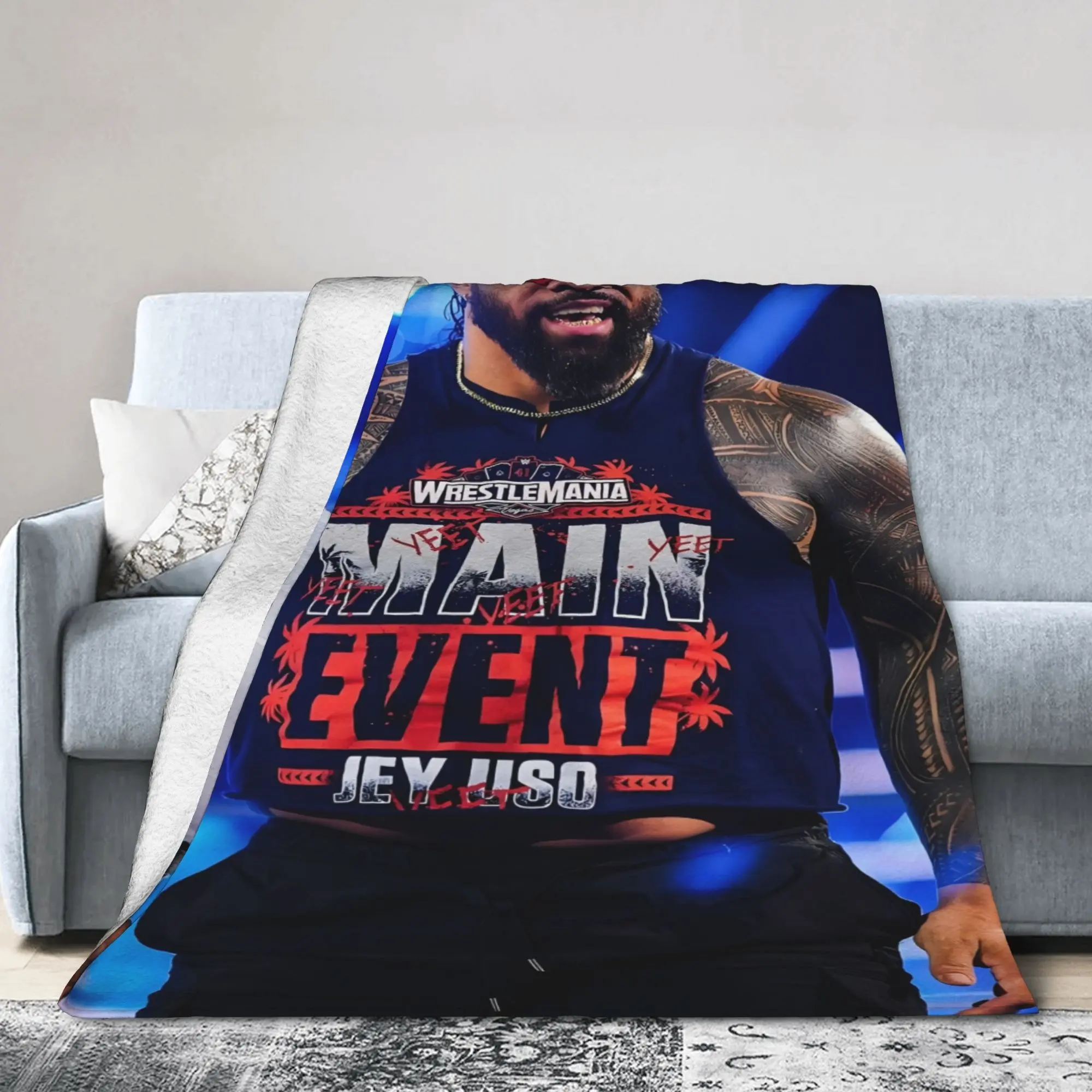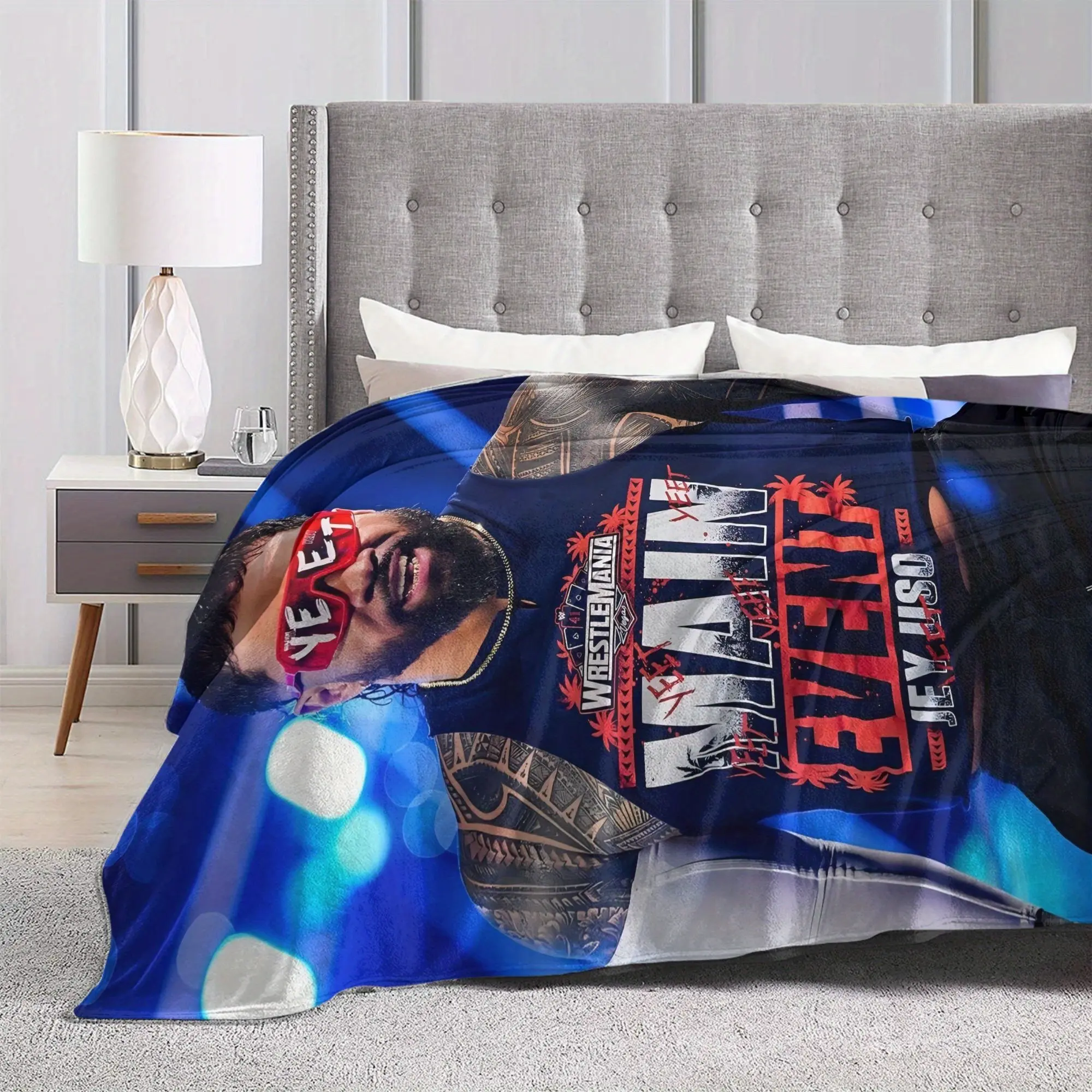 A Jey Uso pattern printed flannel blanket, soft and suitable for all seasons, perfect for bed, sofa, office or travel camping, a gift for fans