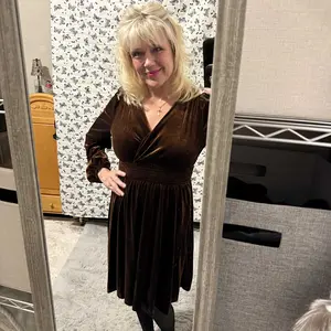 wore this gorgeous emerald velvet dress to the YouTube Theater for one of my Birthday gatherings and received compliments all night long! The material feels luxurious, the fit is incredibly flattering, and the sleeves give it such a classy, elegant touch. It’s comfortable, true to size, and perfect for any special event. I felt confident, stylish, and so beautiful in it.