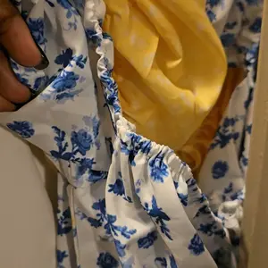 Doesn’t fit. I am 5ft, 100lbs, 32A. The busy area doesn’t adujust, the string is sewing into place and it’s super baggy. The sleeves too puffy and doesn’t look flattering on someone who’s petite. The dress practically falls off me. Won’t be ordering from this brand again since Xs is still big…