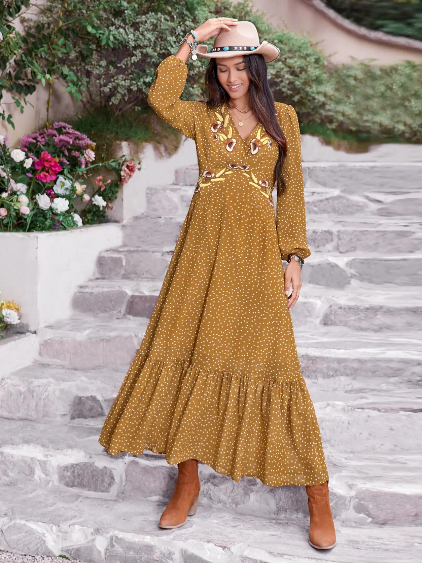 Super cute boho floral design—perfect for fall and winter 🍂❄️ But heads up, the sizing runs off. Love the look, just wish the fit was better.
