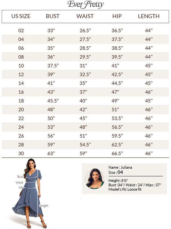 Ever-Pretty Valentine dress Spring Women's High-Low Hem Dress with Flutter Sleeves Surplice V-Neck ,Chiffon for Wedding Guest dress, Cocktail Party Formal dress,2084,womenswear