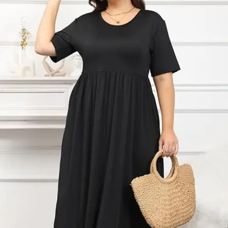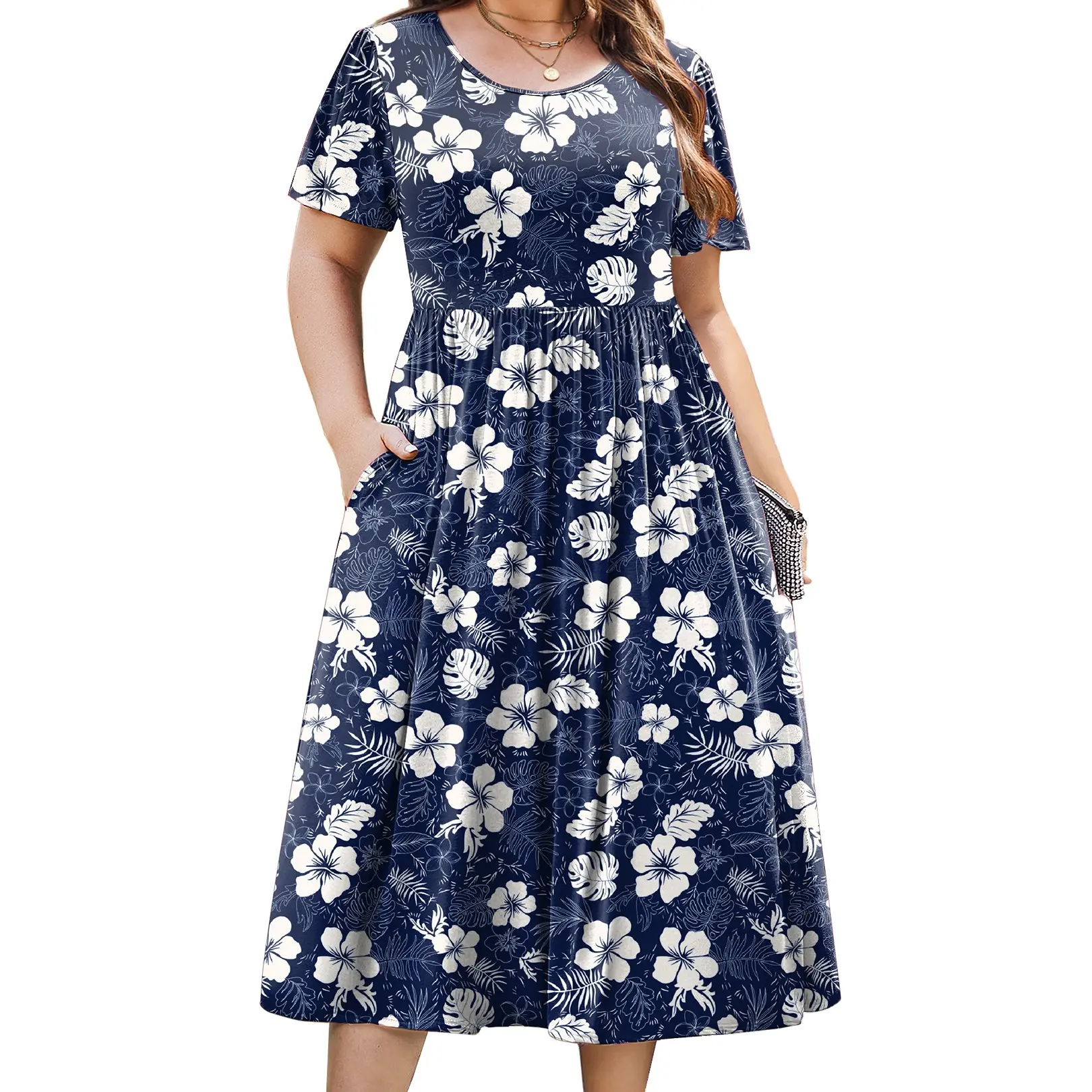 [Features]:Plus size short sleeve dresses with crew neck,floral print or patterned,plain,2 side pockets and elastic at waist.plus size Dress With Pockets,this is sure to become your favorite essential.