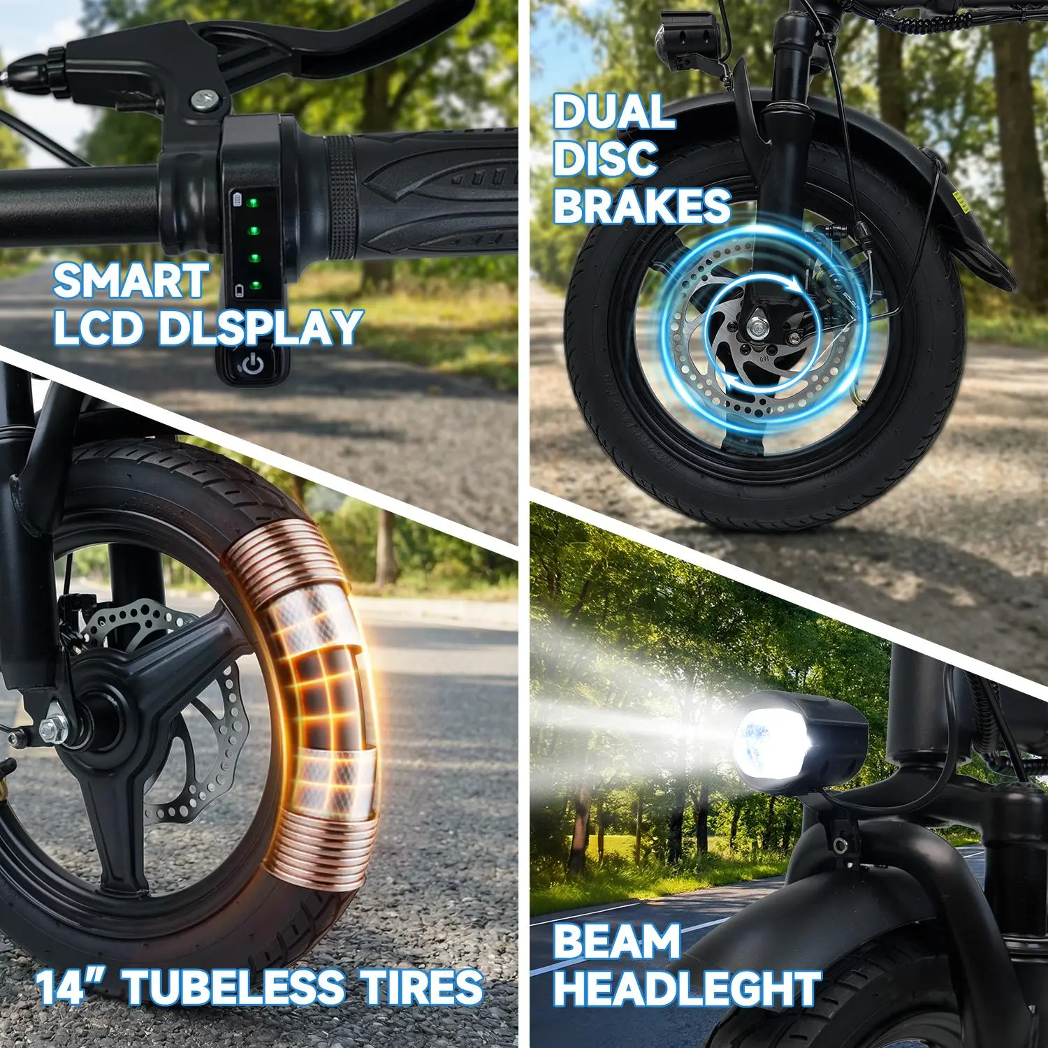 Equipped with a 500W peak motor, this mini folding e-bike delivers reliable power with a top speed of up to 18MPH. this folding e-bike offers three flexible riding options: