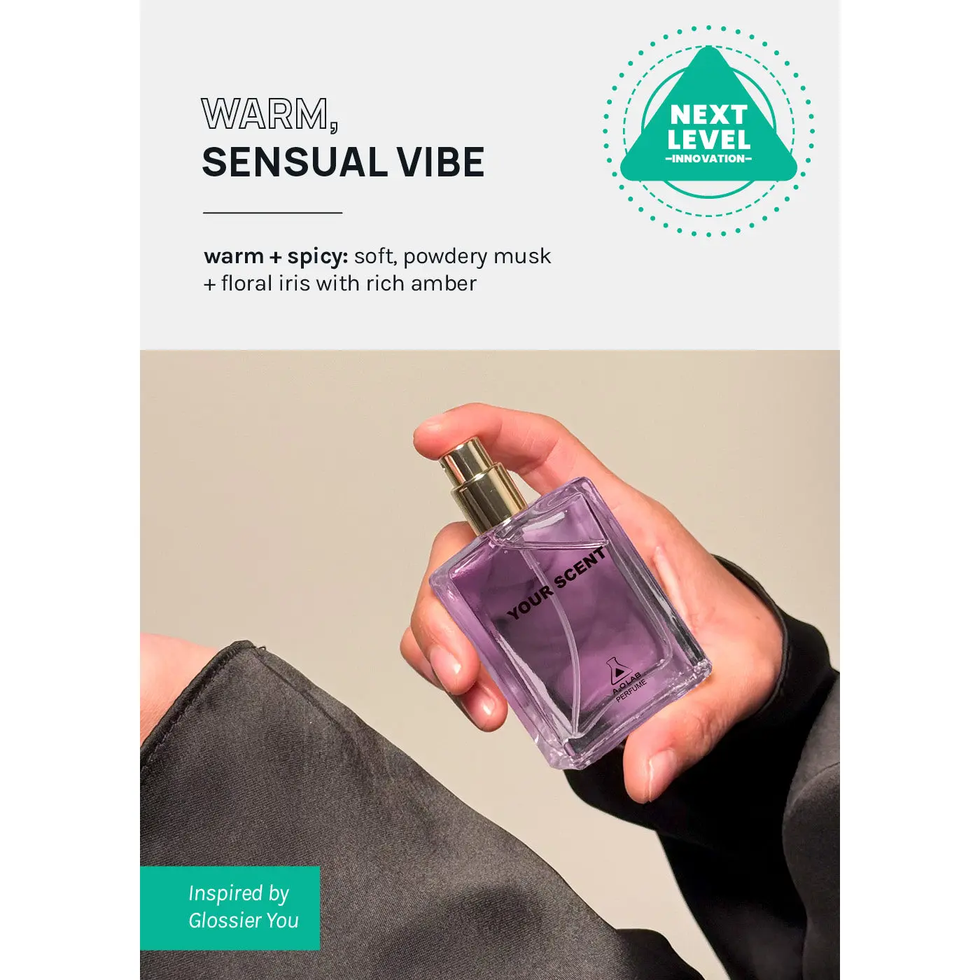 Discover effortless elegance with a2o Lab Your Scent Perfume, a beautifully balanced blend of soft, powdery musk, delicate floral iris, + inviting, rich amber. This luxurious fragrance creates a warm, sensual vibe that feels both intimate + sophisticated, like your natural scent, but elevated.