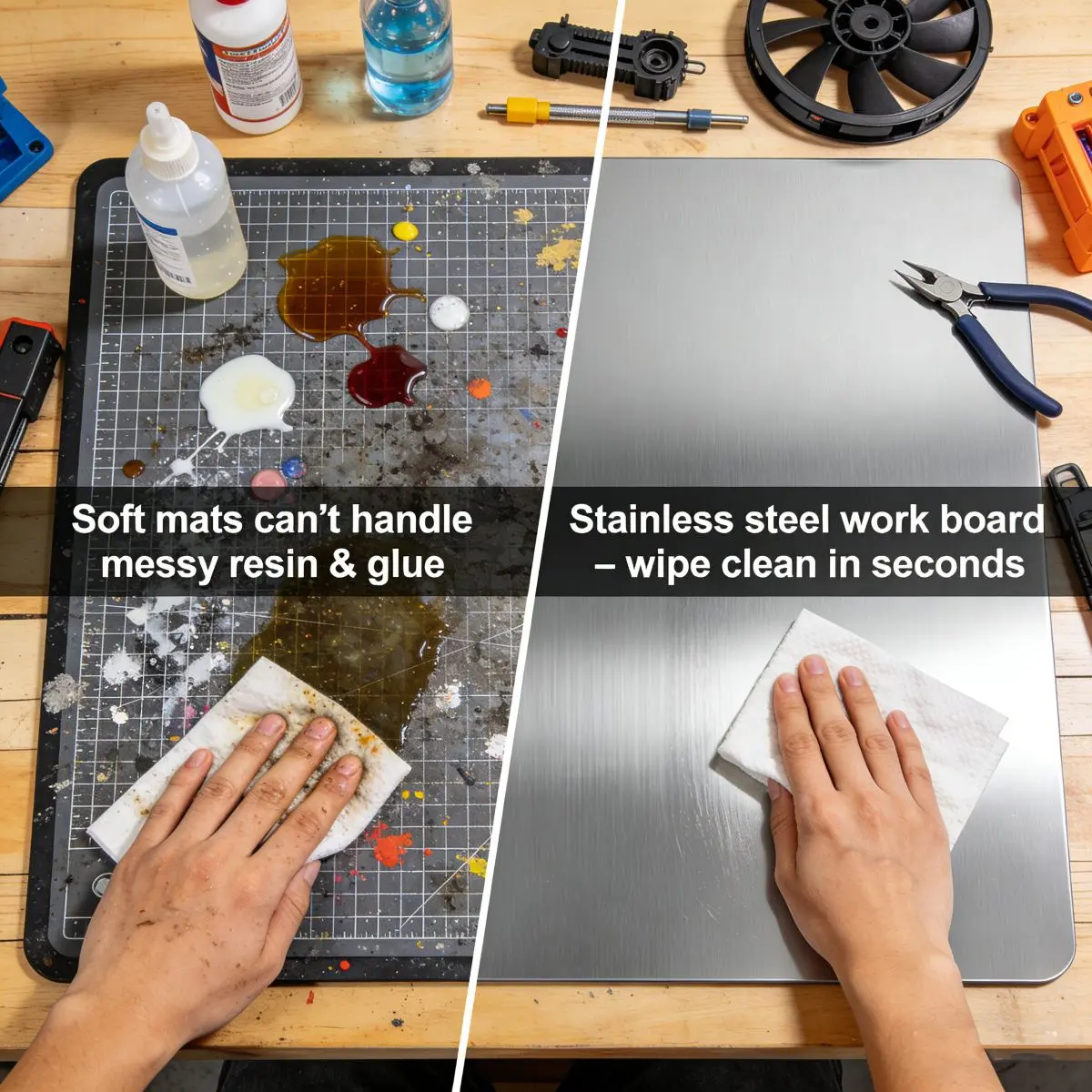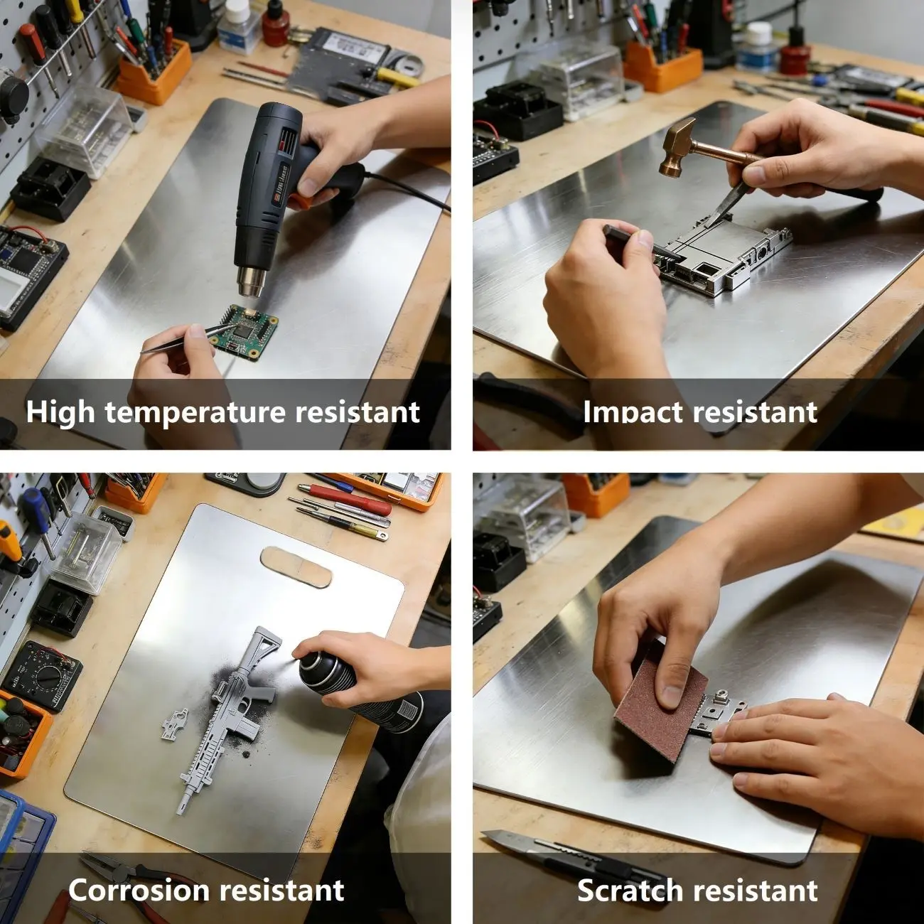This Stainless Steel Craft Desk Mat Table Protector creates a clean, durable DIY work surface for makers, hobbyists, and creators. Perfect for model building, resin printing, electronics repair, and hobby craft projects.
