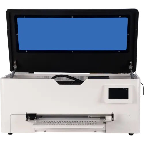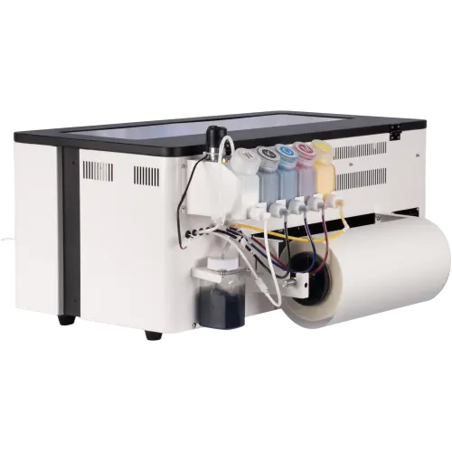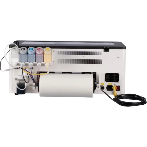 The A3 DTF Printer comes with a stand and roll feeder. It supports automatic roll-to-roll operation and easy sheet cutting. The printer features a professional XP600 printhead, delivering a speed of up to 2480 in²/h, twice as fast as the L1800 printhead. It ensures vivid colors, clear details, and excellent saturation for professional-quality printing.