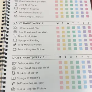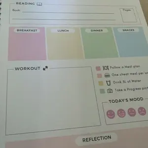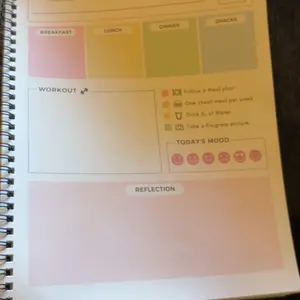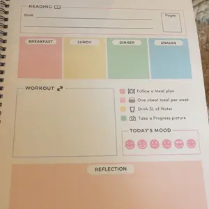 DO NOT BUY! This thing is awful! It gives 1 page for meal planning, 1 page for workout planning, 6 pages of repetitive habit tracking, and 1 daily journal page. Scam!