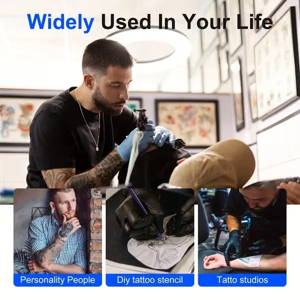 Widely Use--Package Contents: D810 Inkless Printer, 20 US Letter sheets, user manual, guide card, USB drive, and Type-C cable (charging adapter not included). This inkless thermal printer is perfect for home, school, travel, and office use. The versatile device also supports tattoo transfer paper, making it ideal for both everyday printing and tattoo artistry. Compact and portable, it meets diverse printing needs wherever you go
