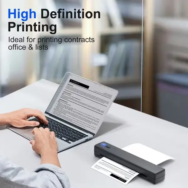 Clear Printing-- D810 Portable Inkless Printer delivers crisp, high-resolution prints with advanced inkless technology. This wireless printer operates for up to 49 minutes on a single charge, producing approximately 200 sheets.