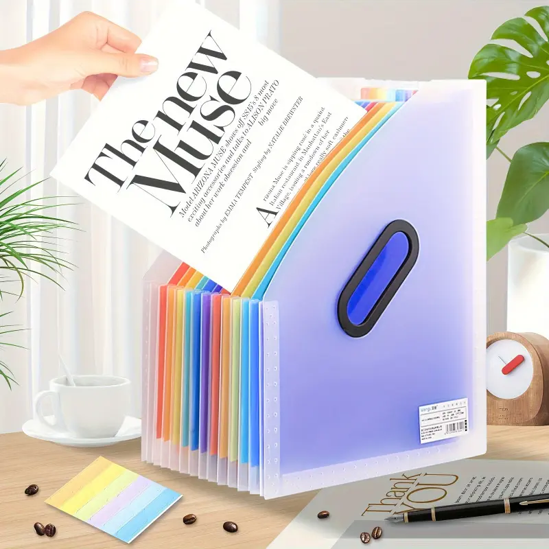1 piece, 13 layers, A4 large capacity transparent expandable folder, rainbow student storage bag, can be used as a vertical accordion archive album, can hold 2000 sheets of paper, suitable for office, home, school, file storage bag, file receipt